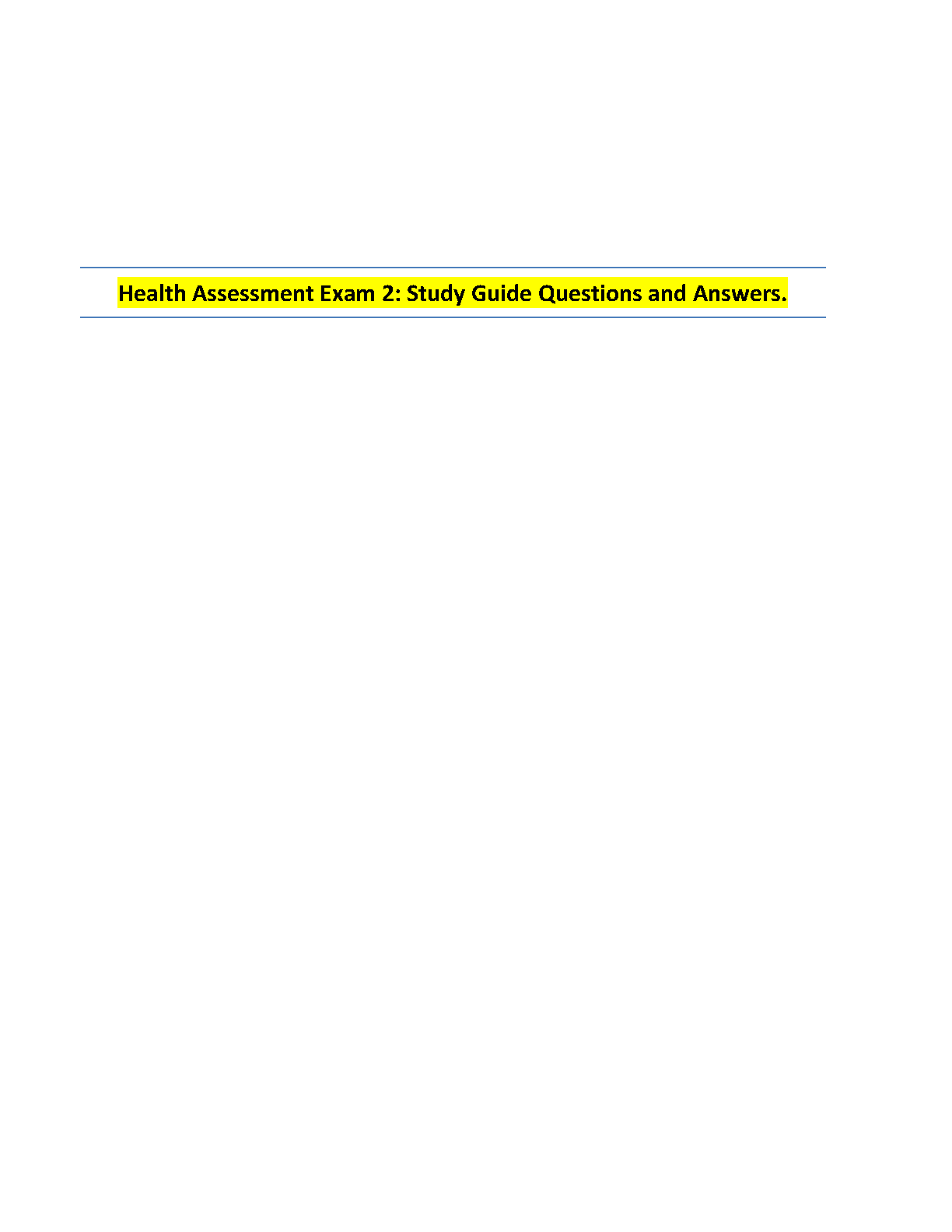 This resource includes study guide questions and answers that are pertinent to health assessment exam 2. It is designed to help students ace their exams and avoid having to retake them.