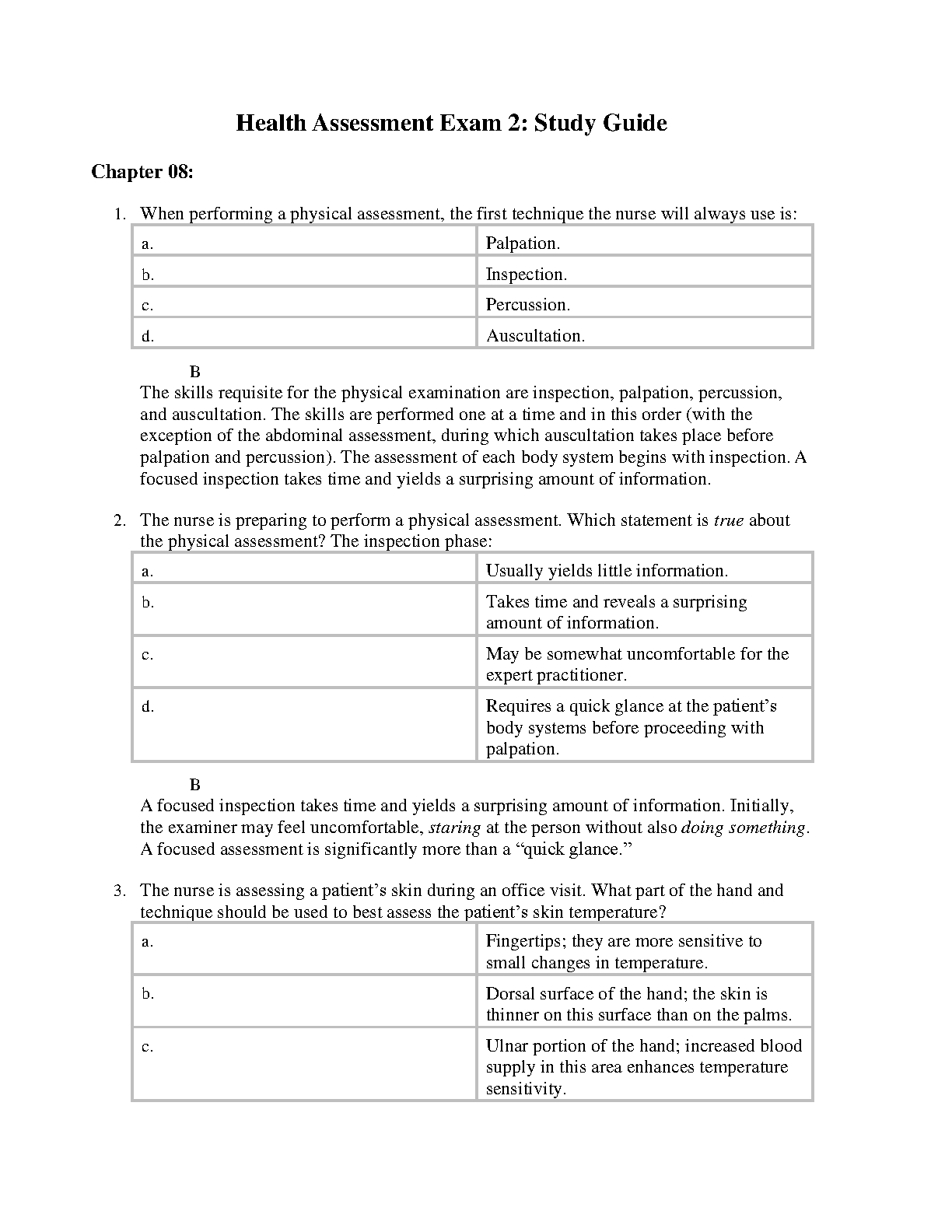 Health Assessment Exam 2: Study Guide Questions and Answers by Barbara Wilson, Patricia Giddens