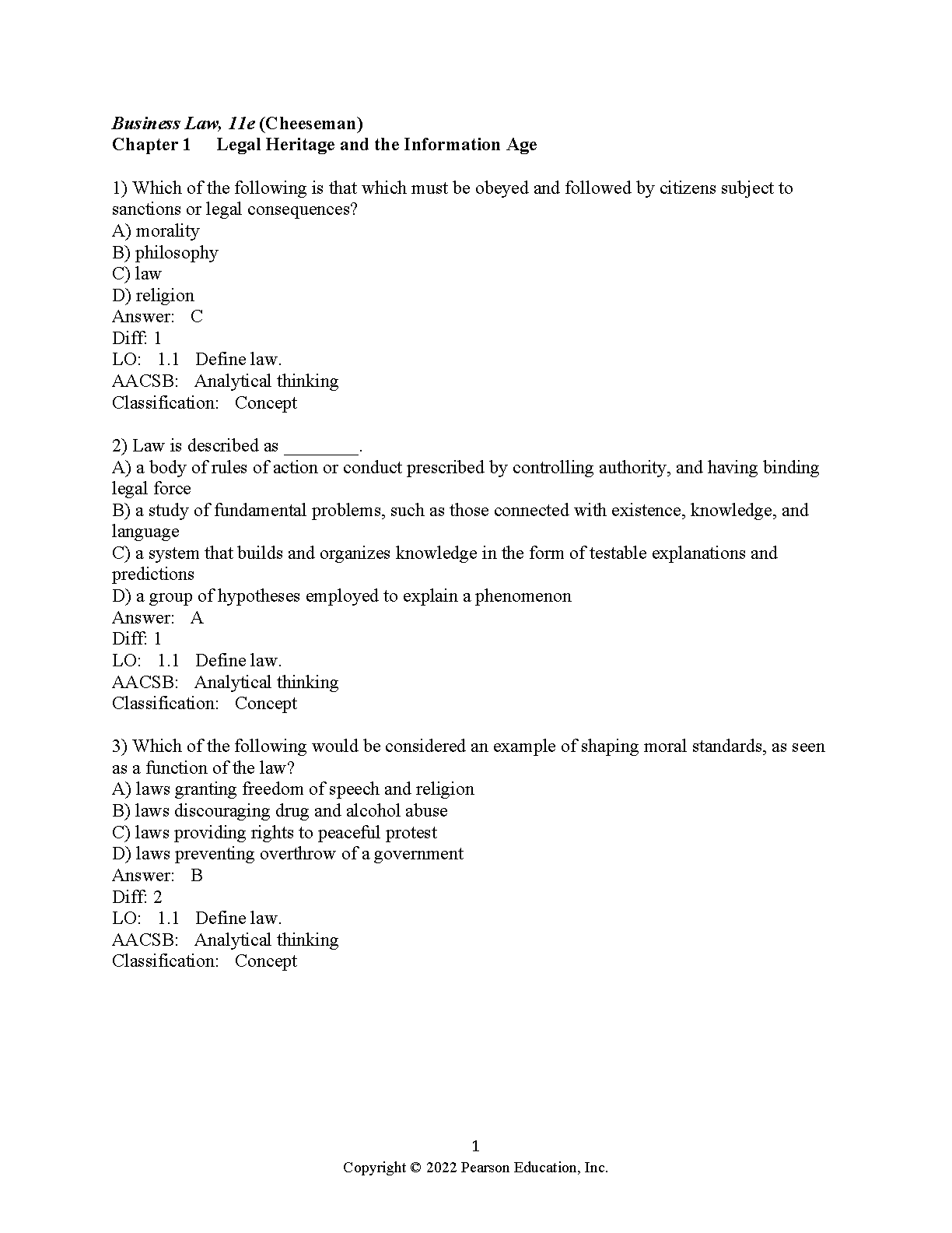Ace your Business Law exams with this comprehensive Test Bank for Henry Cheeseman's renowned textbook. This solution manual provides you with invaluable practice questions and answers, ensuring you're fully prepared to succeed on your first attempt.