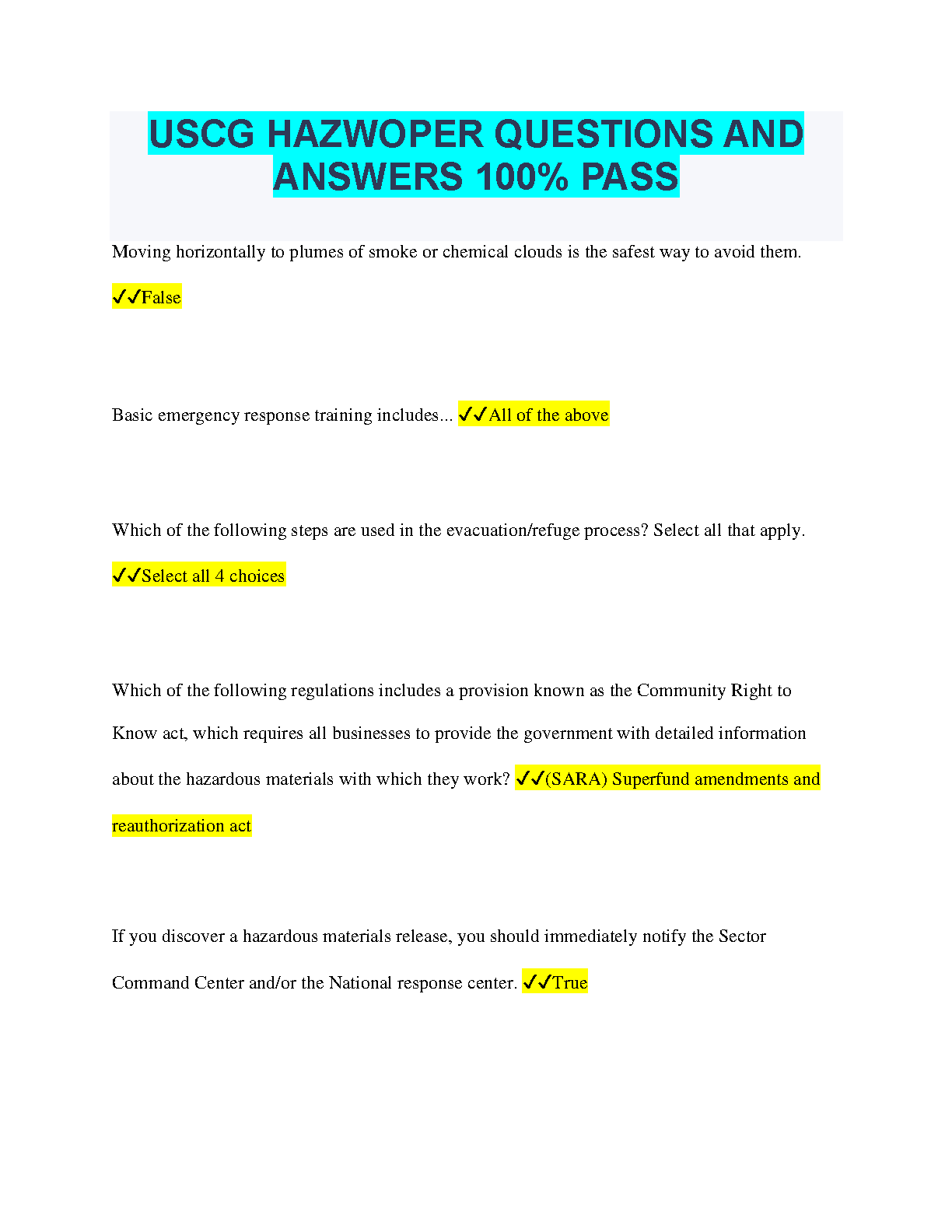 USCG Hazwoper Questions and Answers 100% Pass for 2024/2025