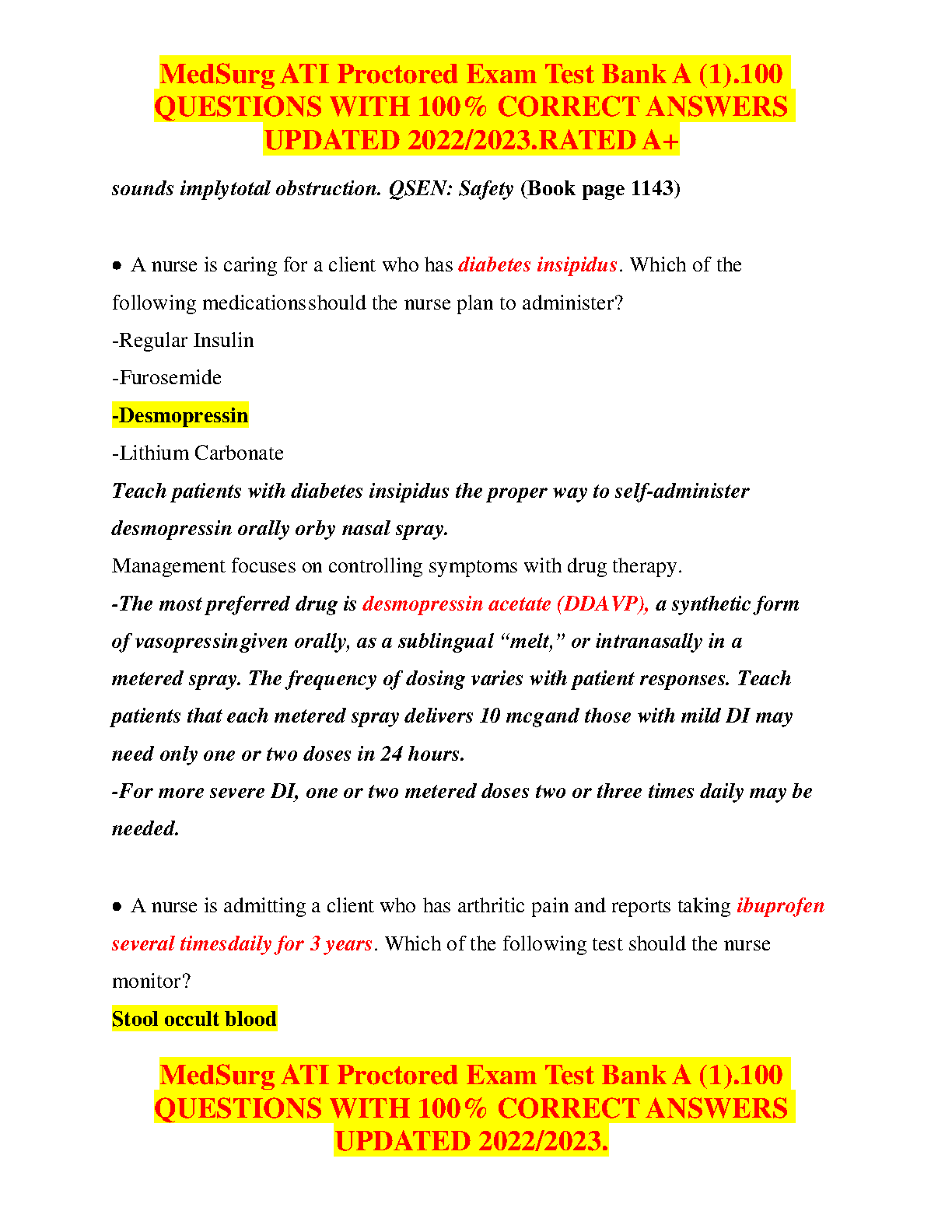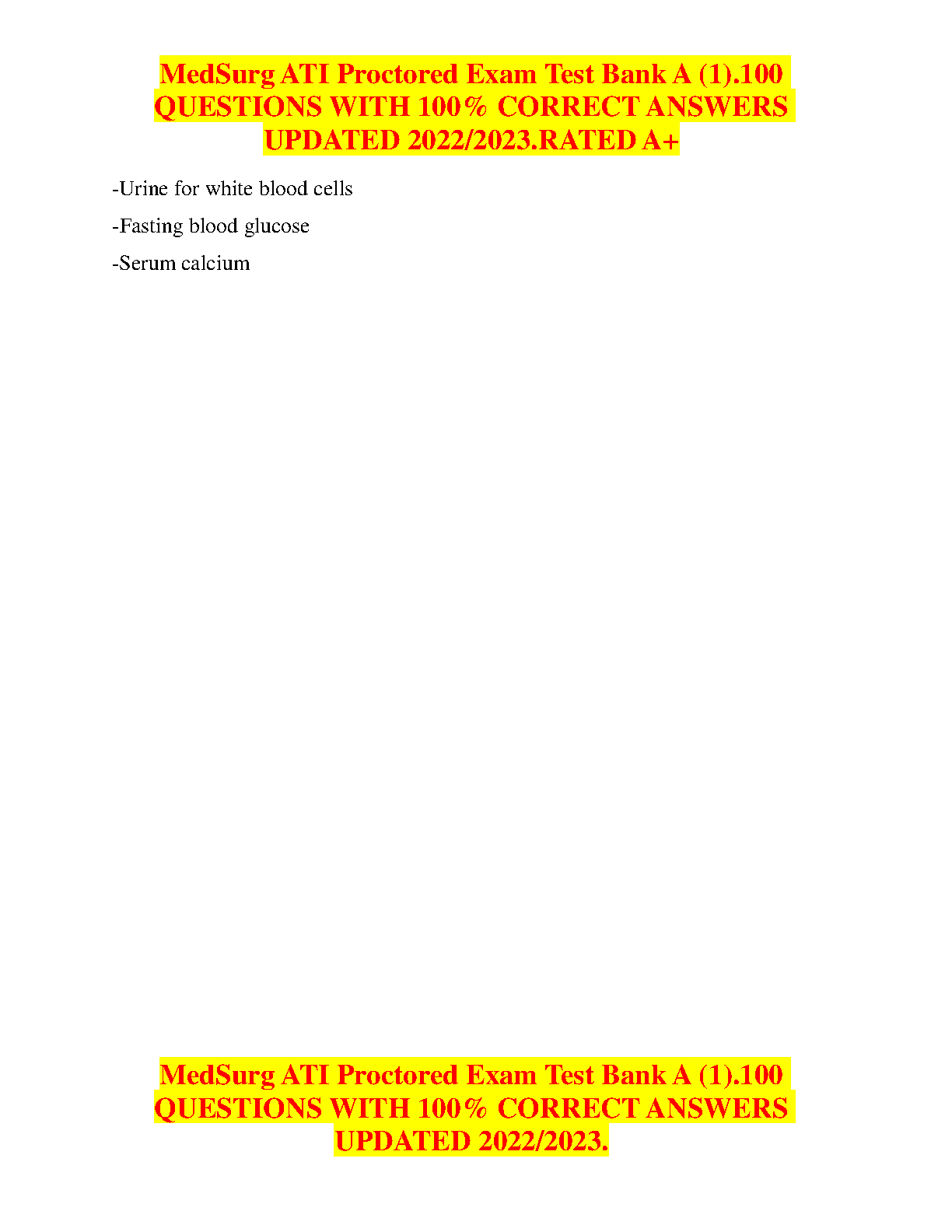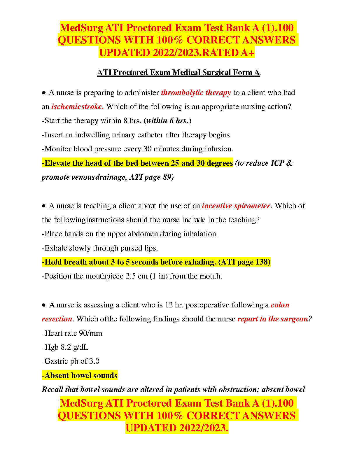 MedSurg ATI Proctored Exam Test Bank A (1,100 Questions) with 100% Correct Answers Updated 2022/2023. Rated A+ by Students
