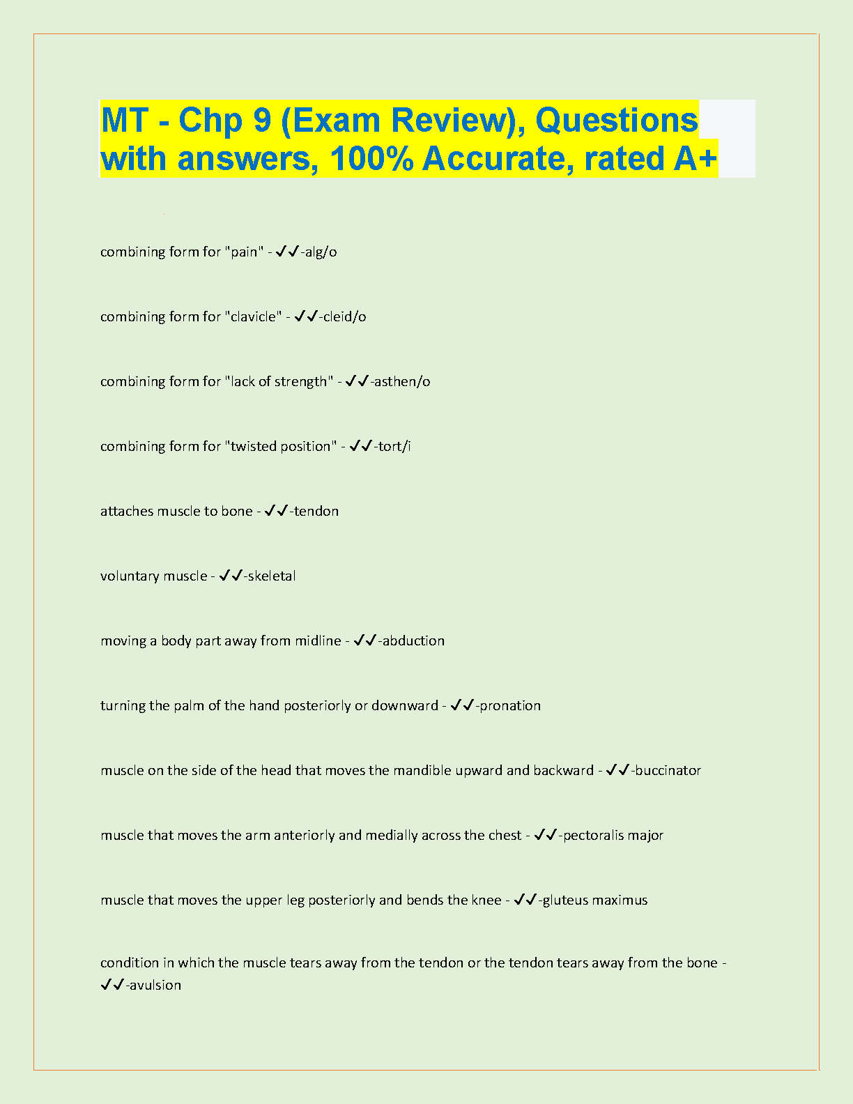MT - Chapter 9 (Exam Review) - 100% Accurate, Rated A+