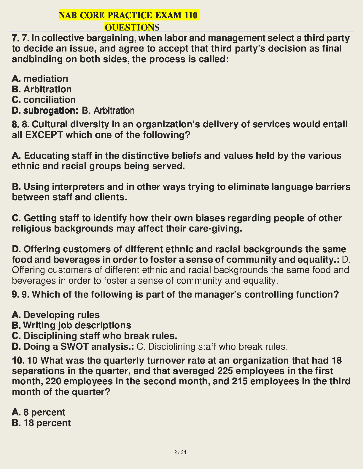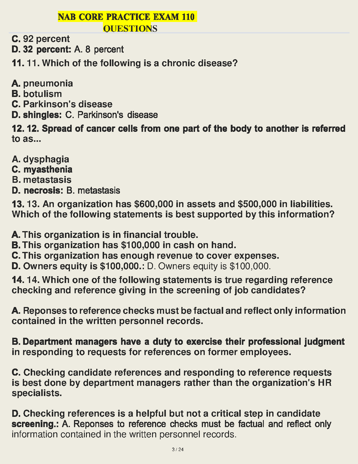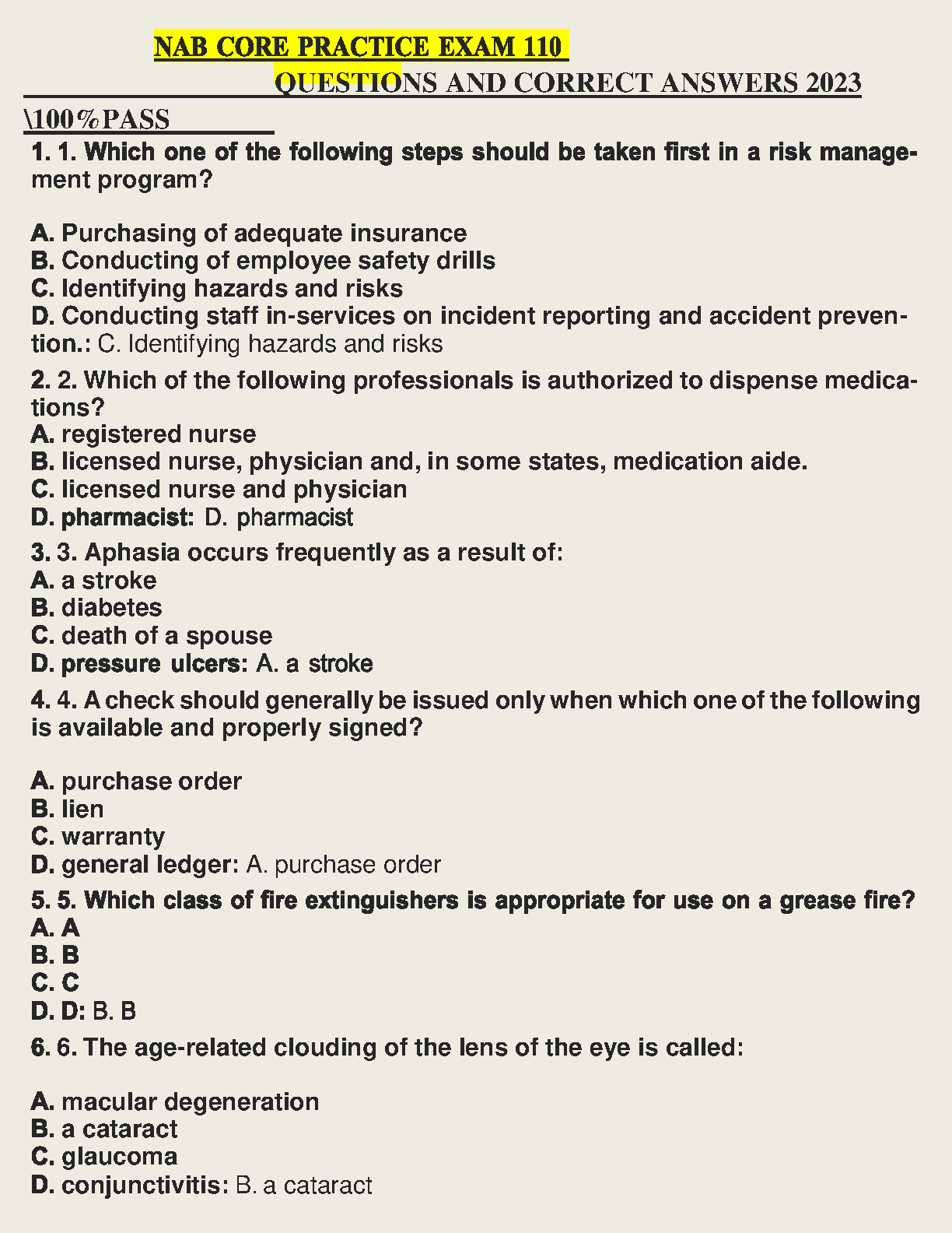 NAB Core Practice Exam 110 Questions and Correct Answers 2023 Edition - By NAB
