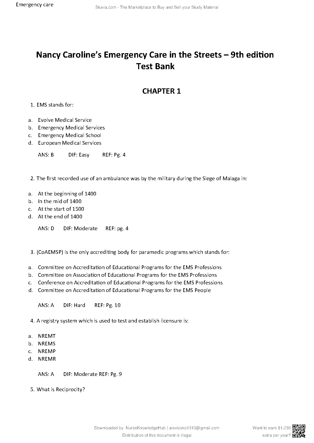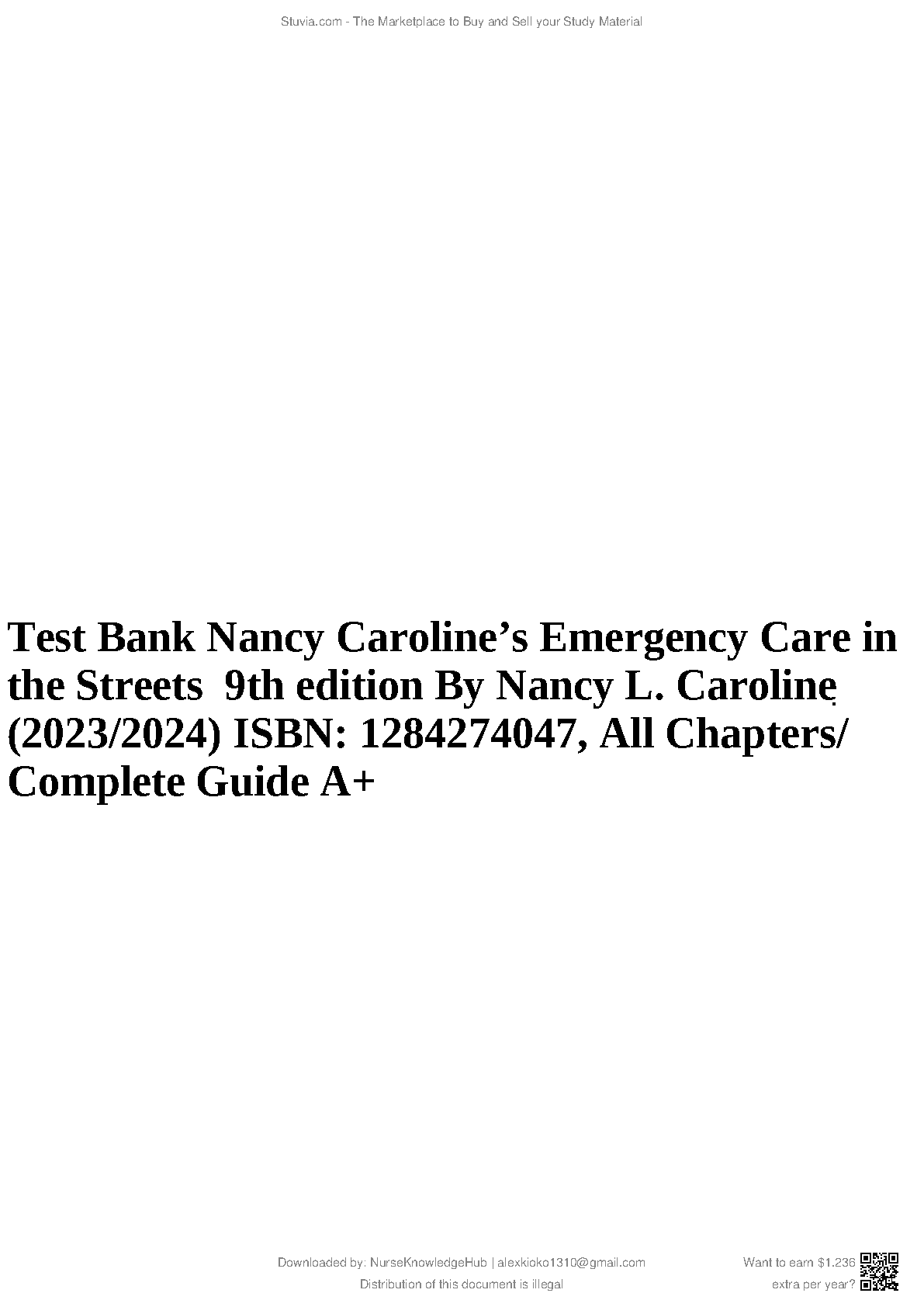 Test Bank for Nancy L. Caroline's Emergency Care in the Streets 9th Edition (2023/2024) ISBN: 1284274047, All Chapters: Complete Guide A+