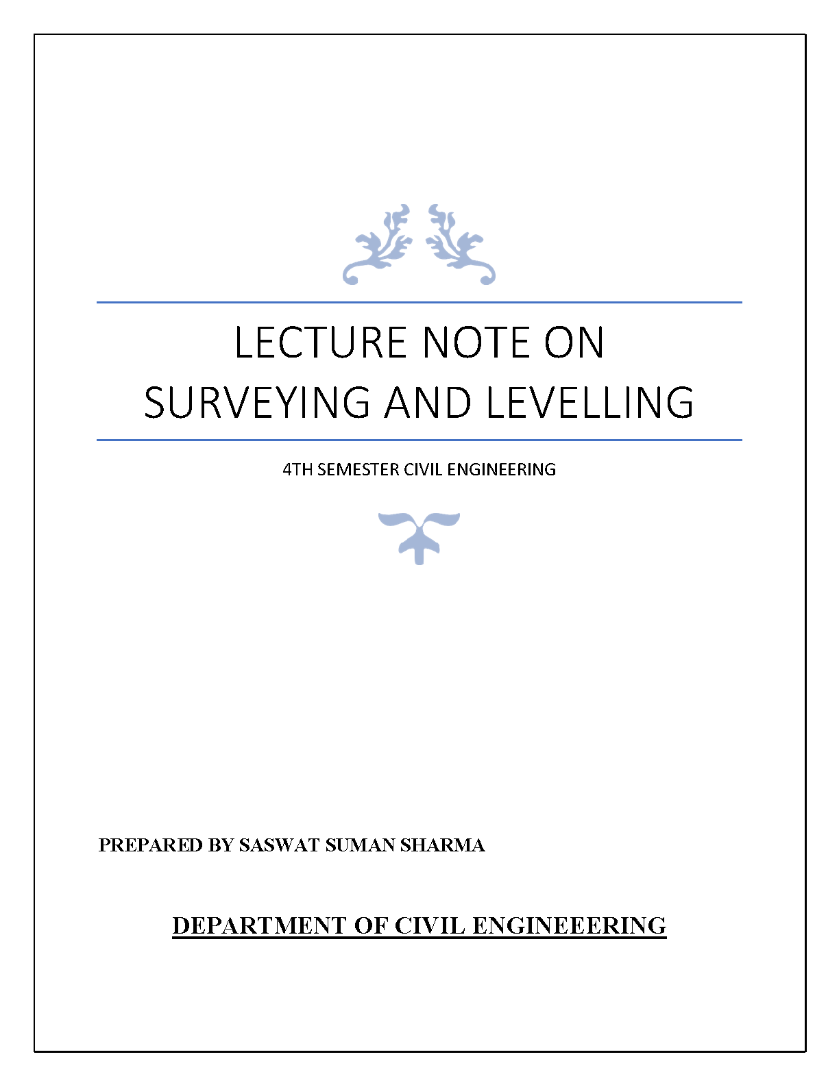 Lecture Notes on Surveying and Levelling - 4th Semester Civil Engineering by Saswat Suman Sharma