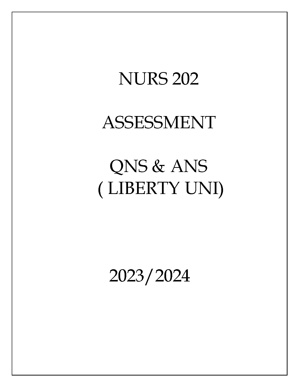 NURS 202 Assessment Q&A (Liberty University) 2023/2024 Edition - Ace Your Exams on the First Attempt!