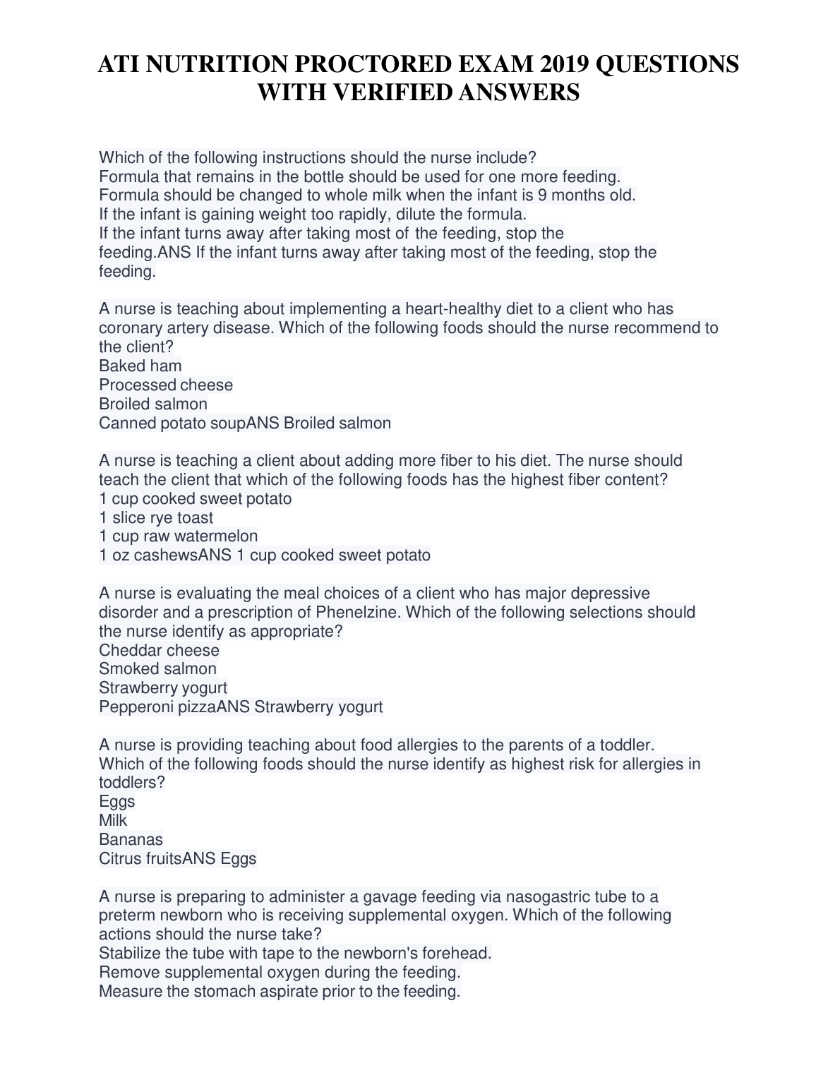 ATI Nutrition Proctored Exam 2019 Questions with Verified Answers - Ace your Exams in First Attempt (2024/2025 Edition)