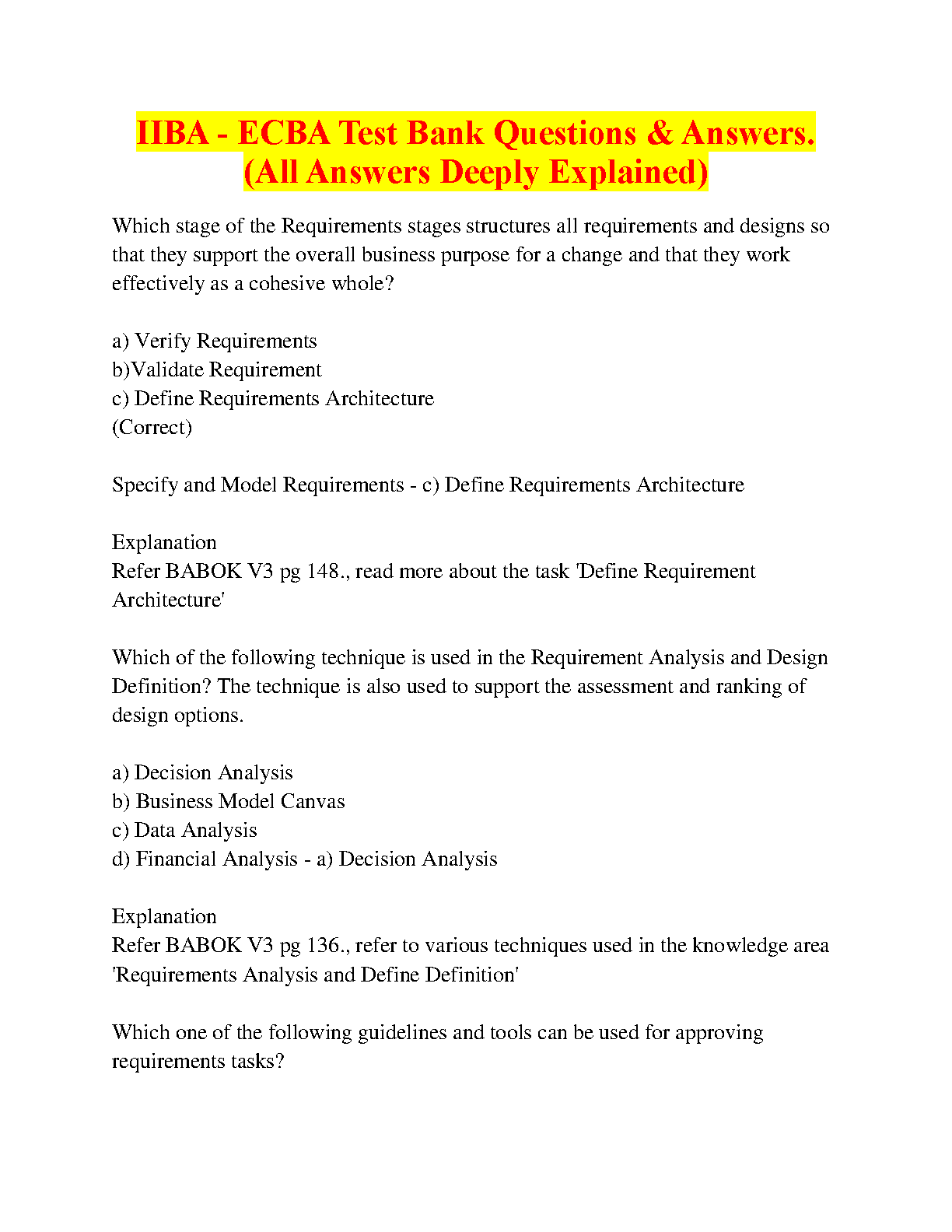 Get ready to ace your IIBA ECBA exam on the first attempt with this comprehensive test bank. All answers are deeply explained, helping you grasp the concepts and confidently tackle any question. This 2024/2025 edition is the most up-to-date resource available, giving you the edge you need to avoid resits.