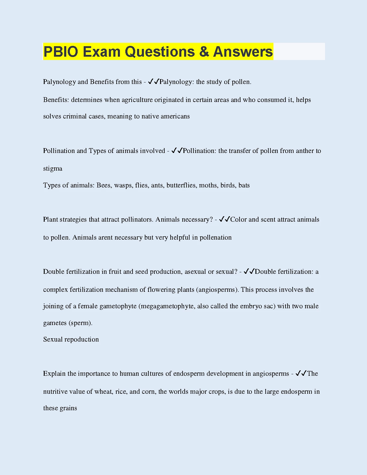 PBIO Exam Questions & Answers BRAND NEW SOLUTION!!!