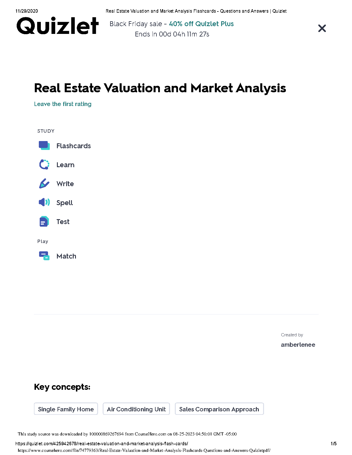 Real Estate Valuation and Market Analysis Flashcards - Questions and Answers by Amberlene | 2024/2025 Edition - Ace Your Exams on the First Try