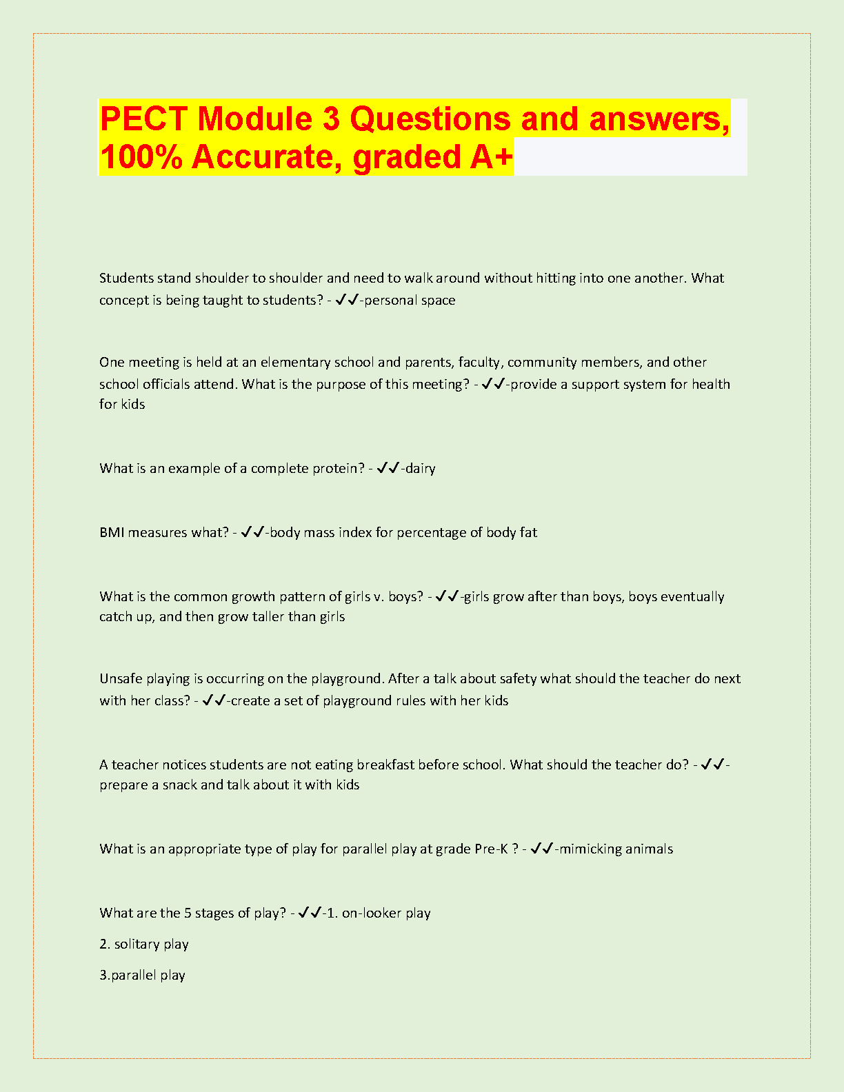 Get a perfect score on PECT Module 3 exam with our 100% accurate, graded A+ questions and answers. Prepare effectively and confidently pass your exam on the first attempt.