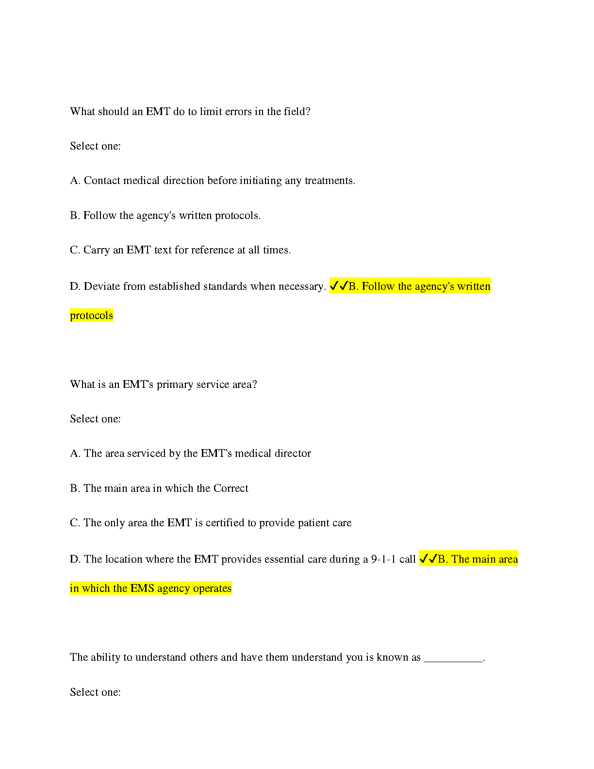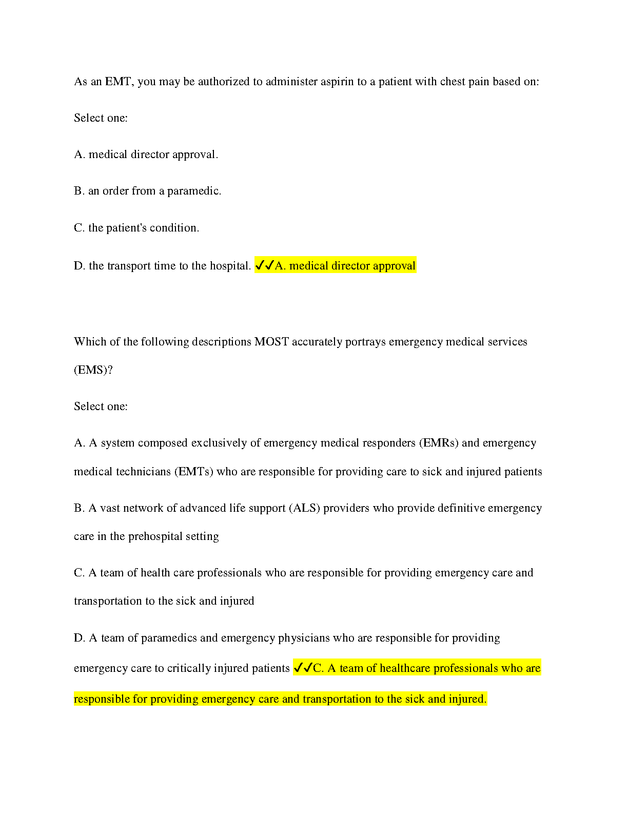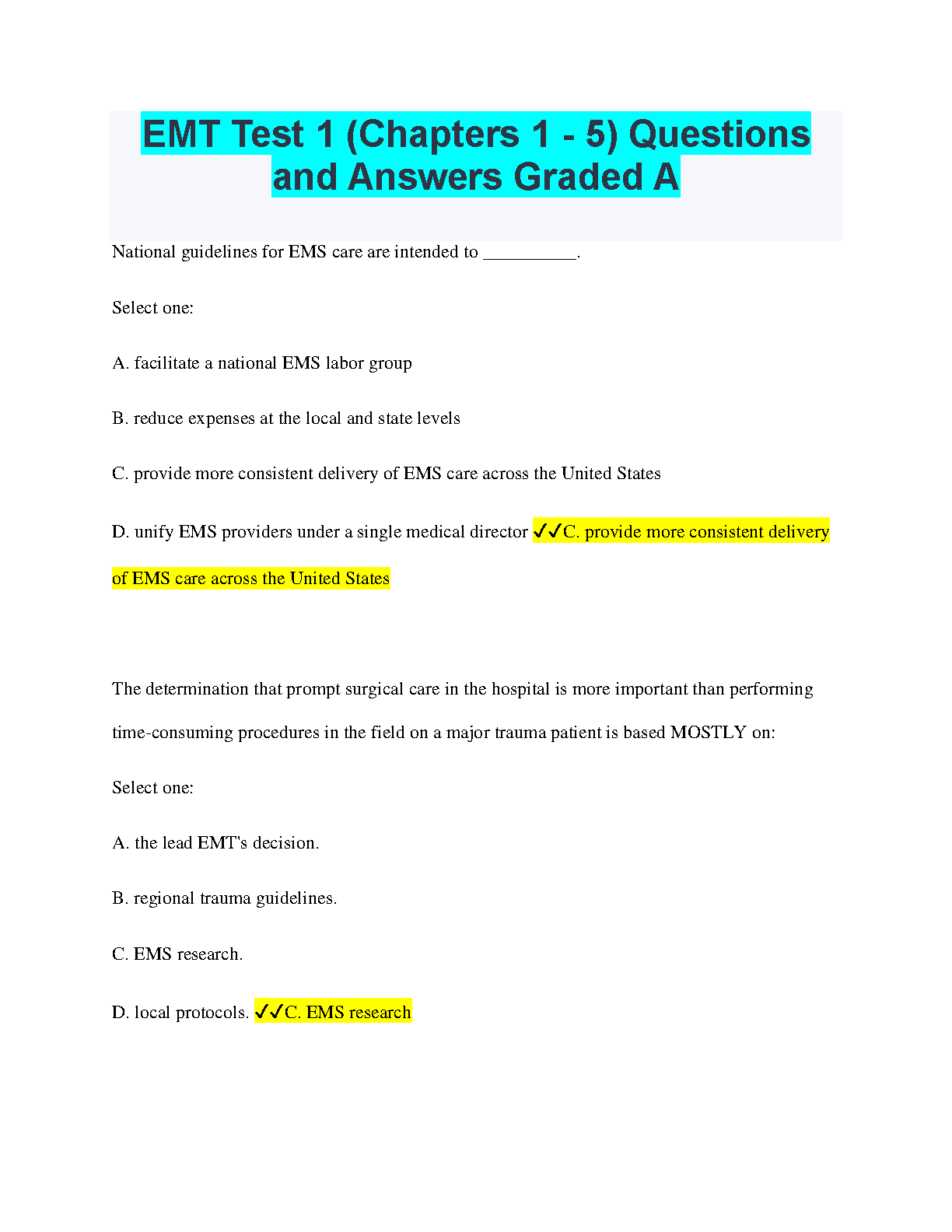 EMT Test 1 (Chapters 1 - 5) Questions and Answers Graded A - EMT Test 1 (Chapters 1 - 5) Questions and Answers Graded A - 2024/2025 Edition