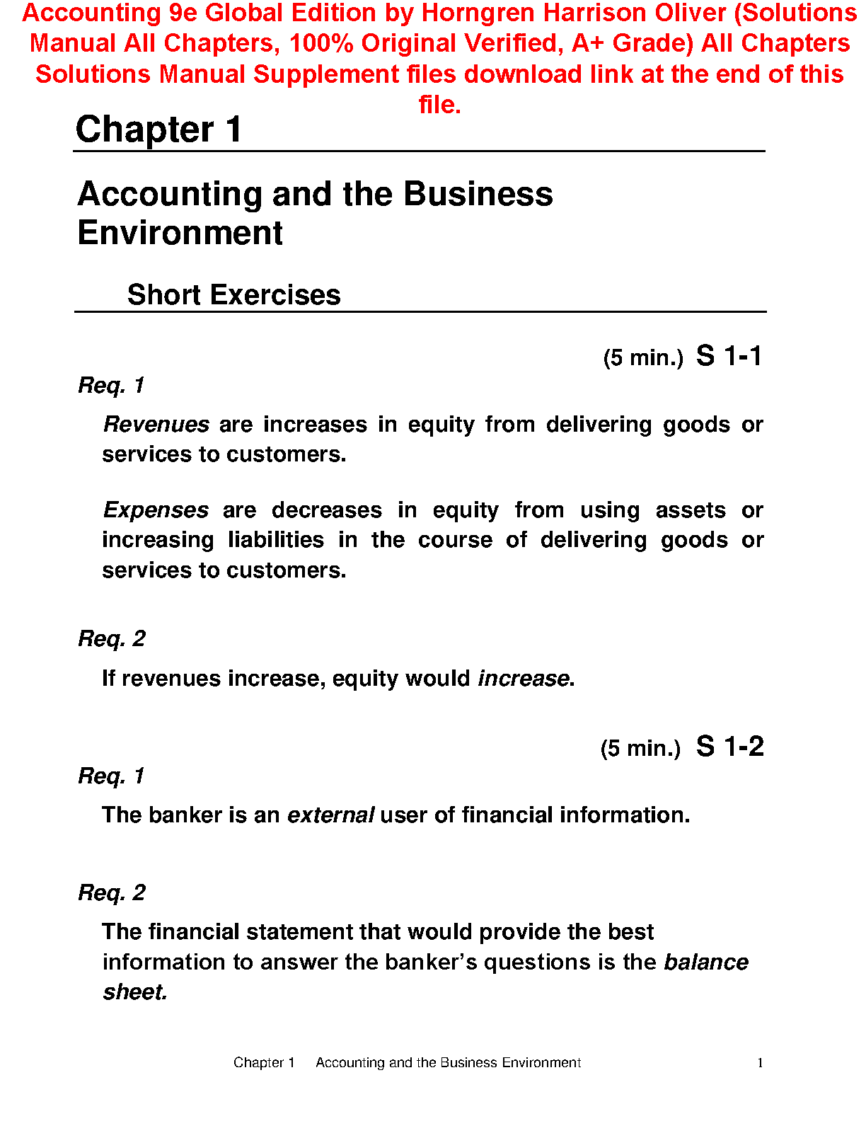 Accounting 9e Global Edition by Horngren, Harrison, Oliver (Solutions Manual All Chapters, 100% Original Verified, A+ Grade) - Chapter 1: Accounting and the Business Environment