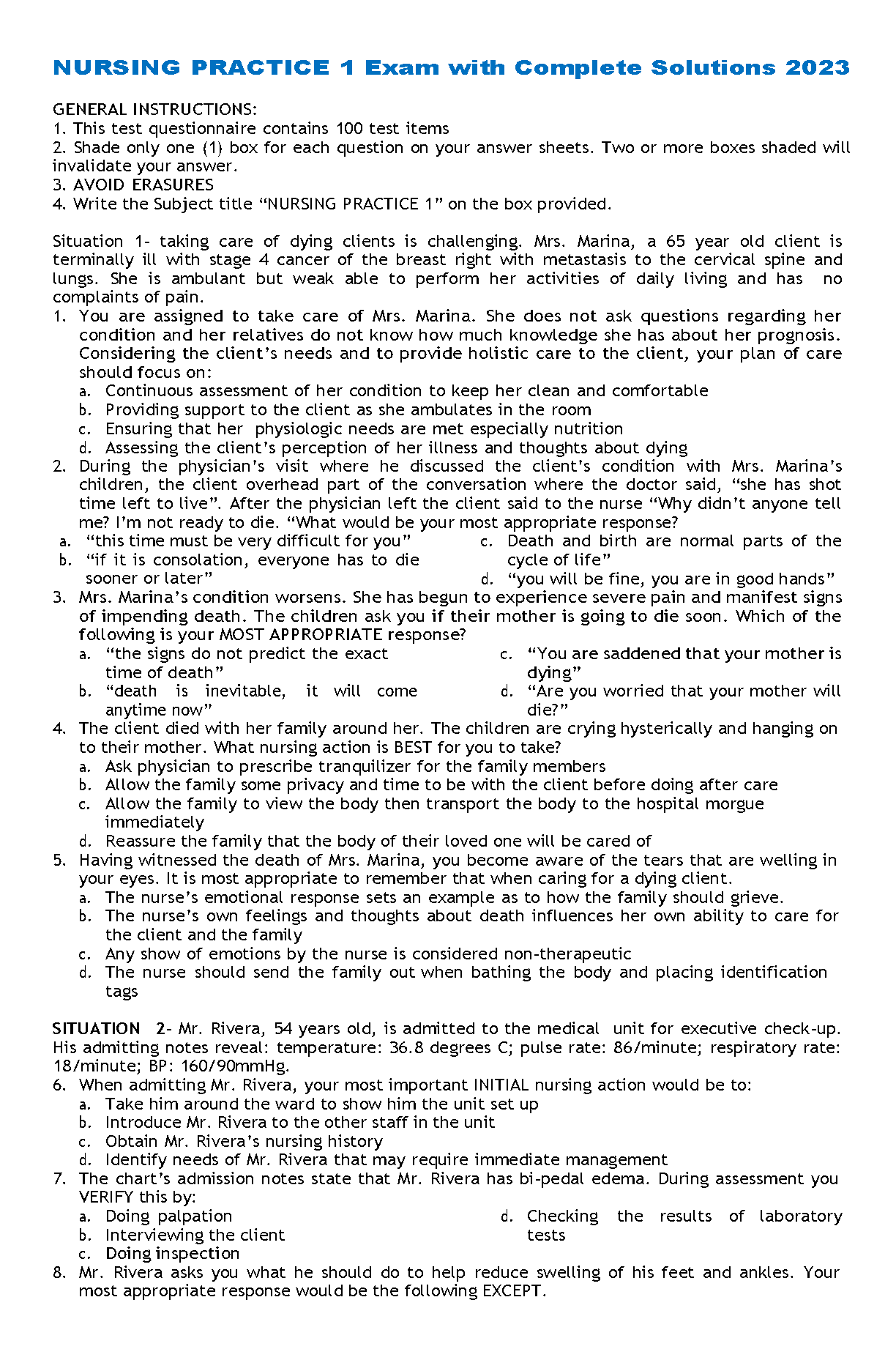 Nursing Practice 1 Exam with Complete Solutions 2023 Edition by - Pass Nursing Exams on First Attempt & Avoid Resits!