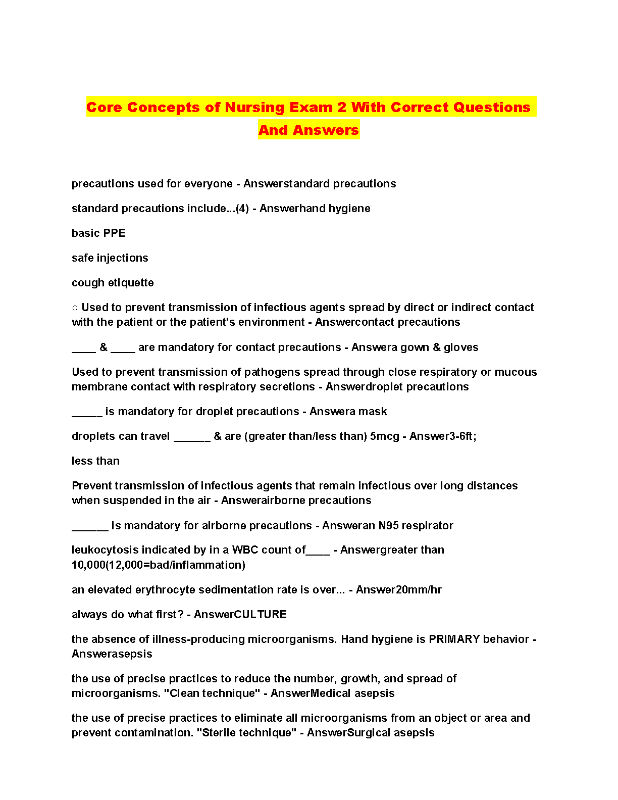 Core Concepts of Nursing Exam 2 With Correct Questions and Answers 2024/2025 Edition - Ace Your Nursing Exams on the First Attempt!