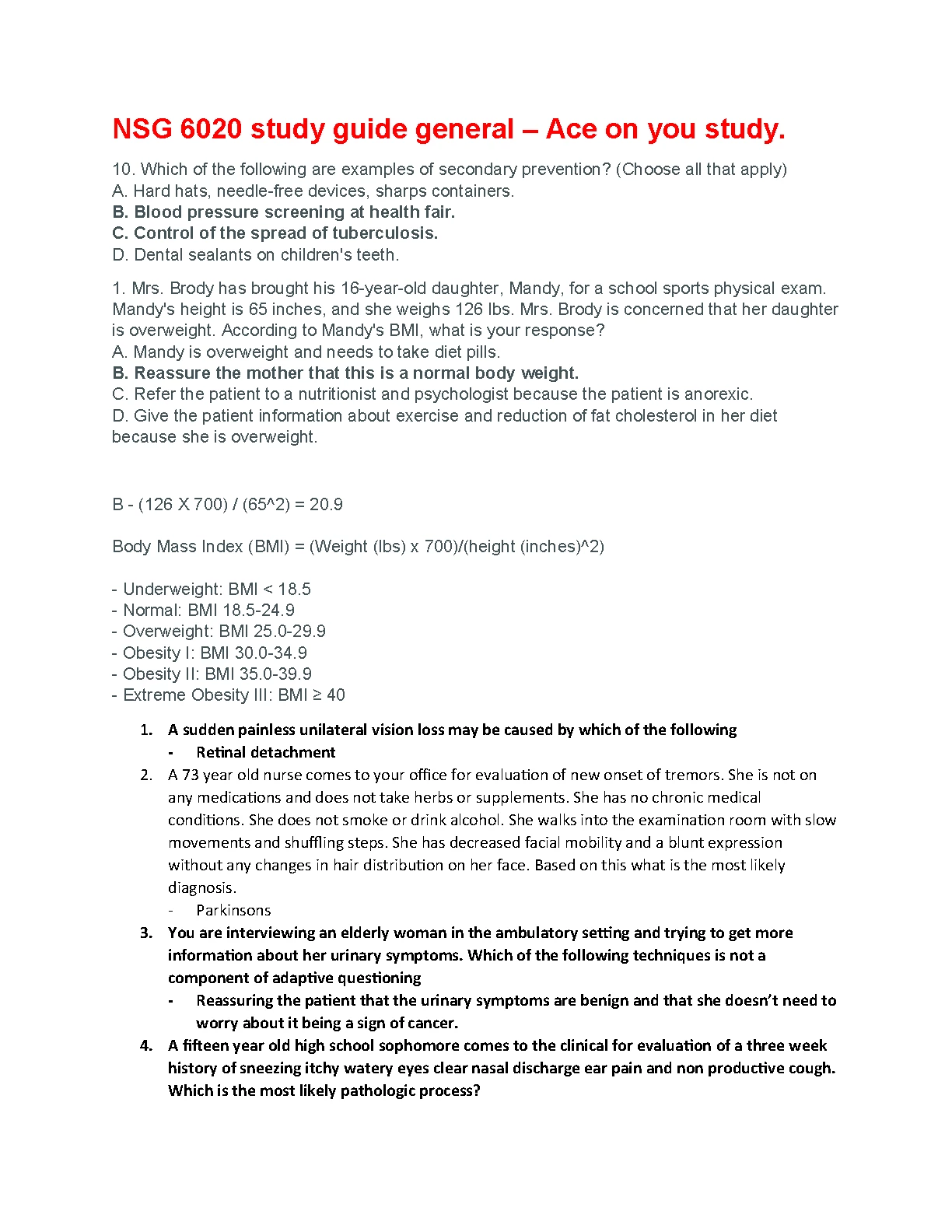 NSG 6020 study guide general A+ GRADED 2023