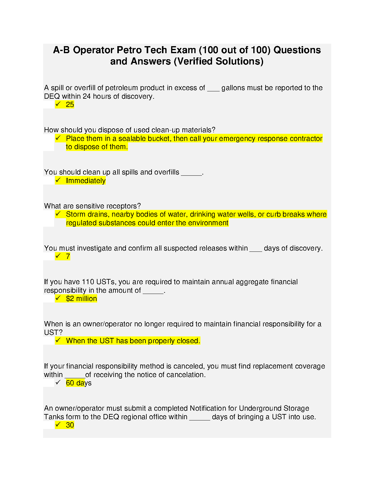 A-B Operator Petro Tech Exam (100 out of 100) Questions and Answers (Verified Solutions)