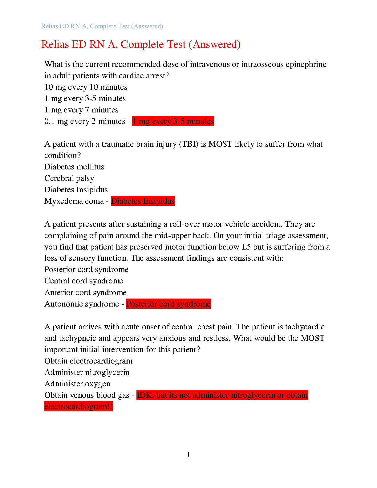 Relias ED RN A Complete Test (Answered) - 2024/2025 Edition - Pass Your Exams on the First Attempt