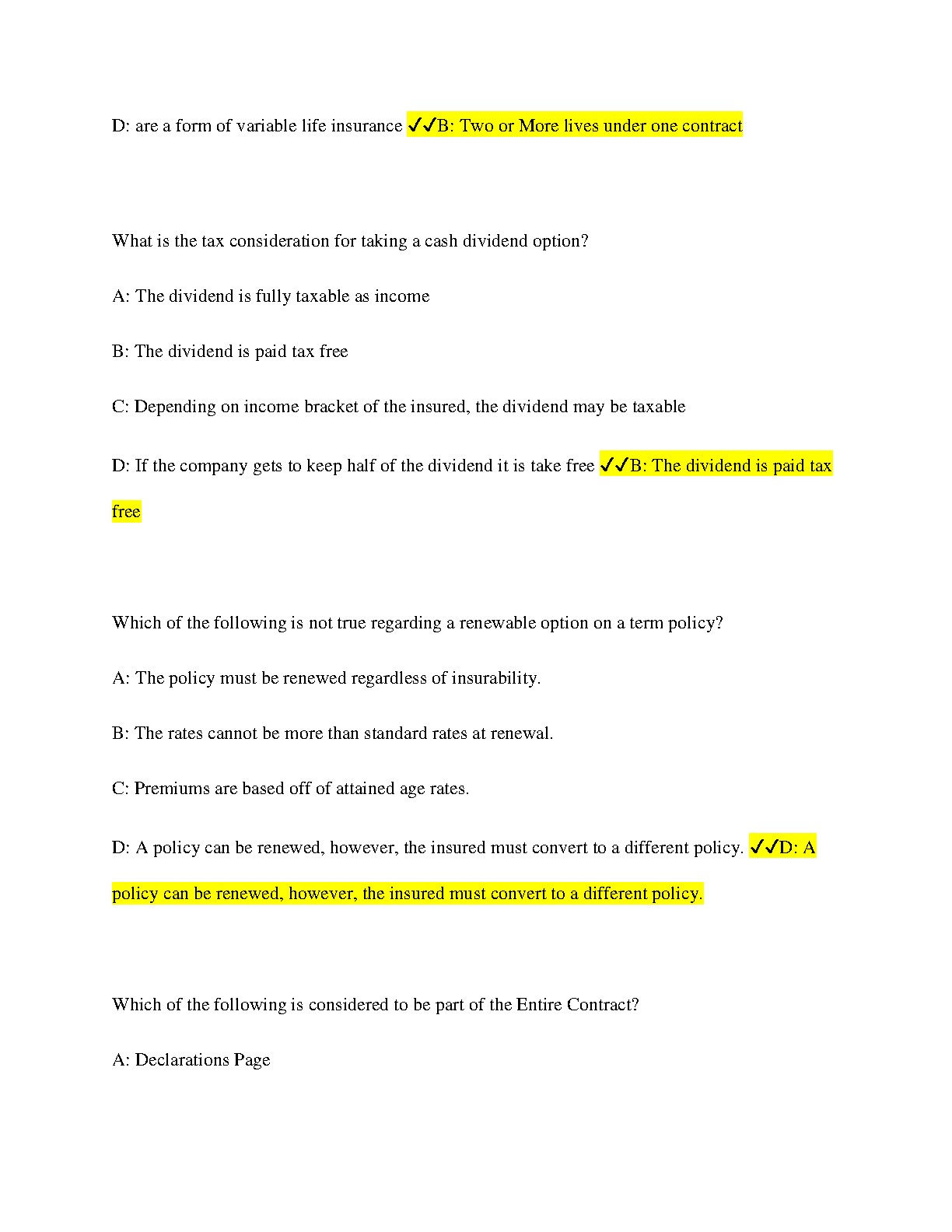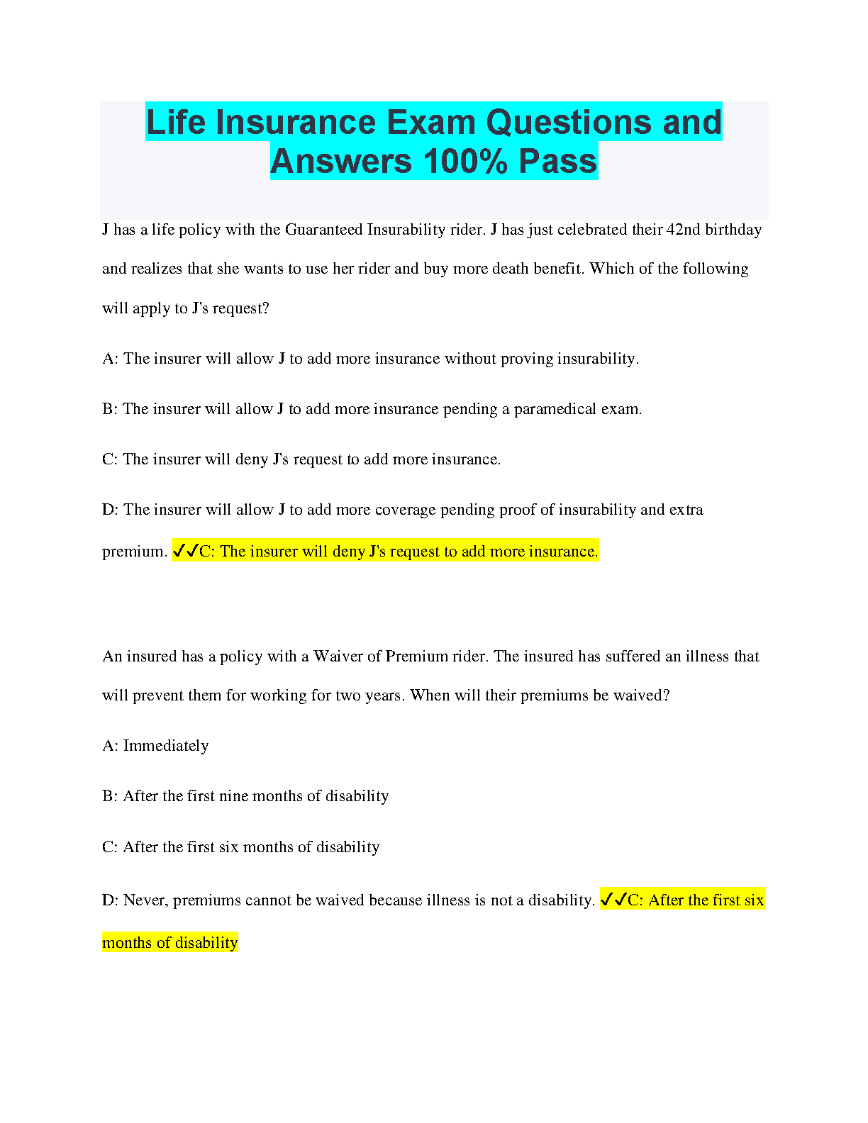 Life Insurance Exam Questions and Answers 100% Pass - 2024/2025 Edition