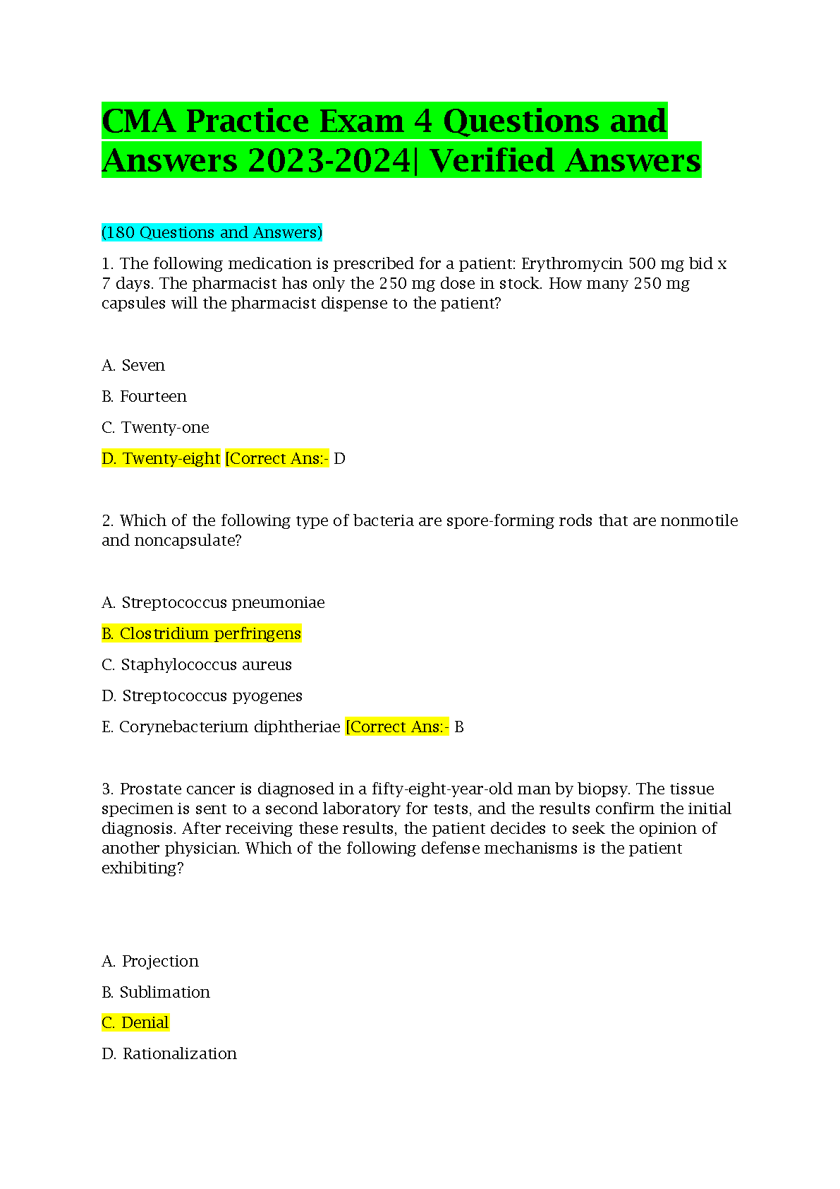 CMA Practice Exam 4 Questions and Answers 2023-2024 - Verified Answers by [Author Name]