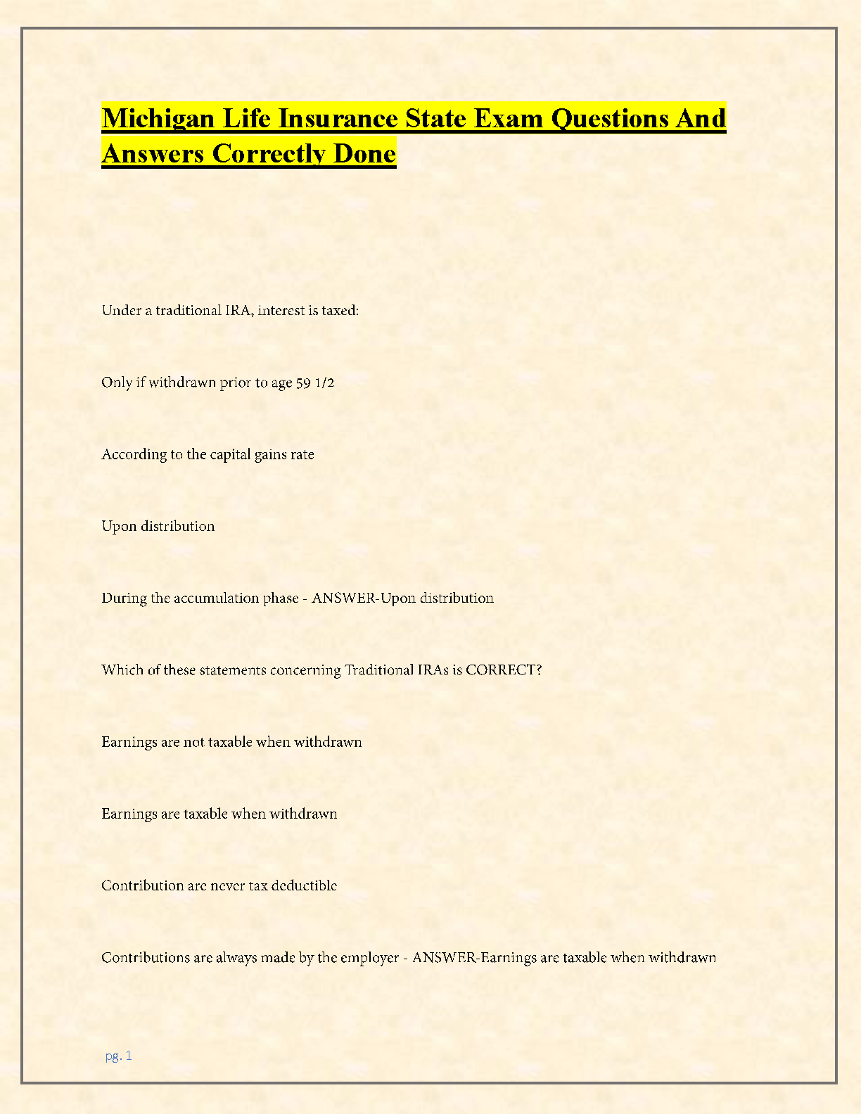 Michigan Life Insurance State Exam Questions And Answers Correctly Done: Ace Your Exam With Confidence!
