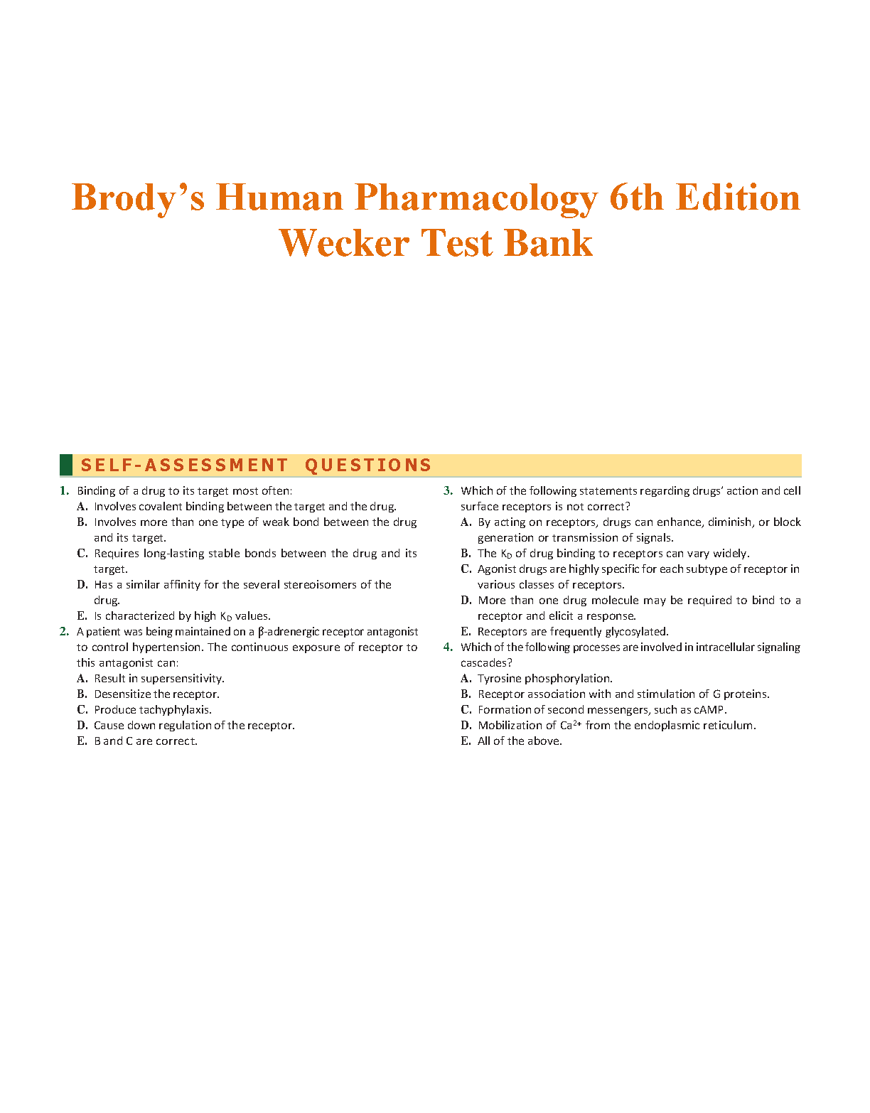 Get the most out of your pharmacology studies with this comprehensive test bank for Brody's Human Pharmacology 6th Edition. Designed to help students master the key concepts and prepare for exams with confidence.