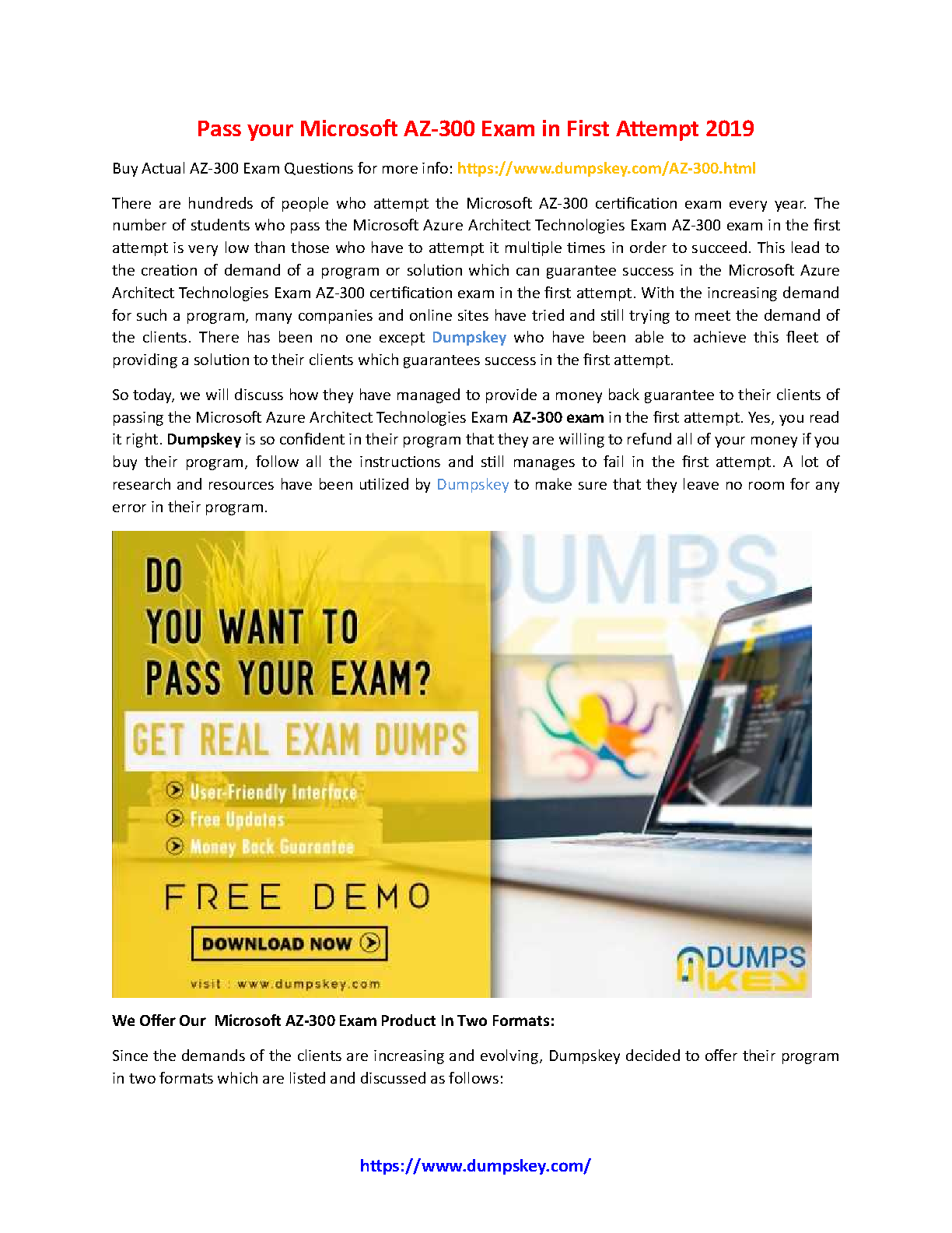 Microsoft AZ-300 Exam Dumps: Pass Your Exam in the First Attempt 2019 Edition by Dumpkey