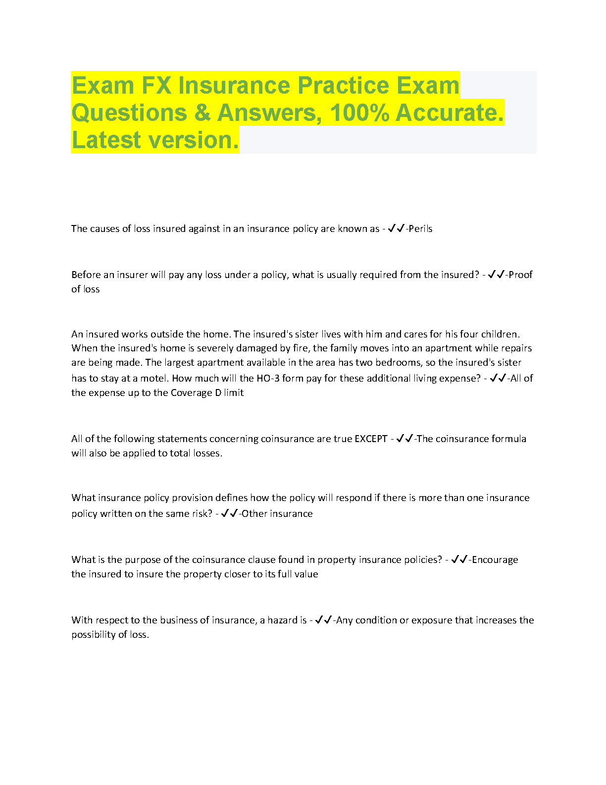 Exam FX Insurance Practice Exam Questions & Answers, 100% Accurate: Latest Edition