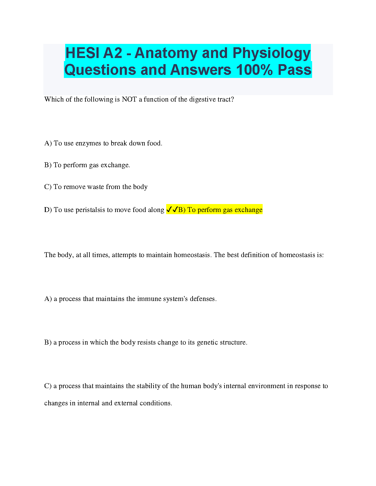 HESI A2 - Anatomy and Physiology Questions and Answers 100% Pass - 2024/2025 Edition - Ace Your Exams on the First Attempt!