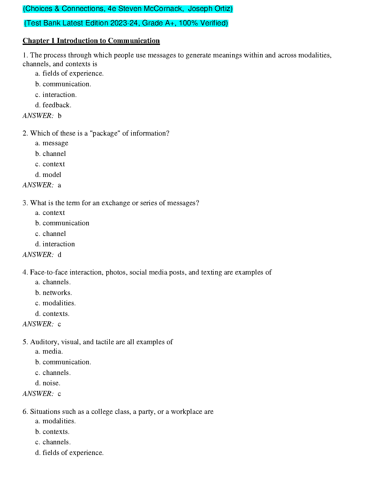 Choices & Connections, 4e Steven McCornack, Joseph Ortiz - Test Bank Latest Edition 2023-24