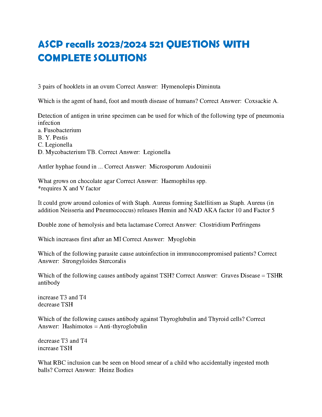 ASCP Recalls 2023/2024 521 Questions with Complete Solutions by unknown author