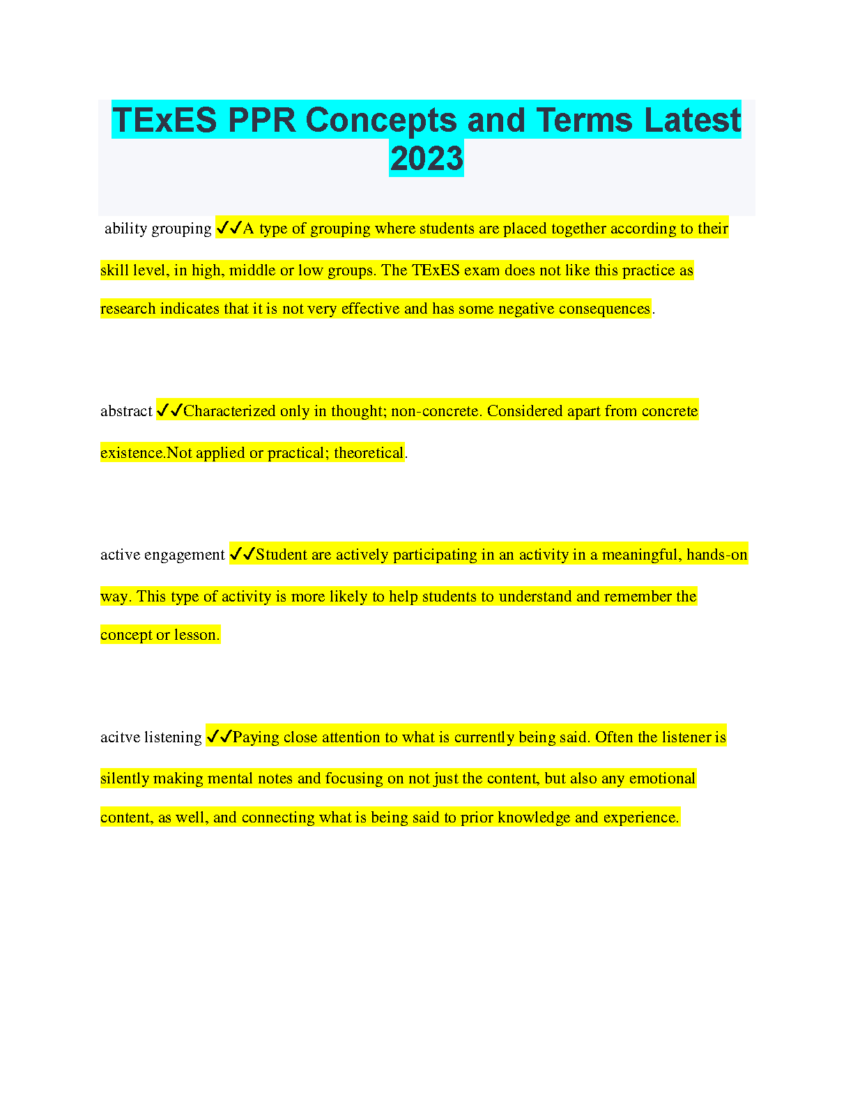 TEXES PPR Concepts and Terms Latest 2023 Edition - Ace Your Exams on the First Attempt