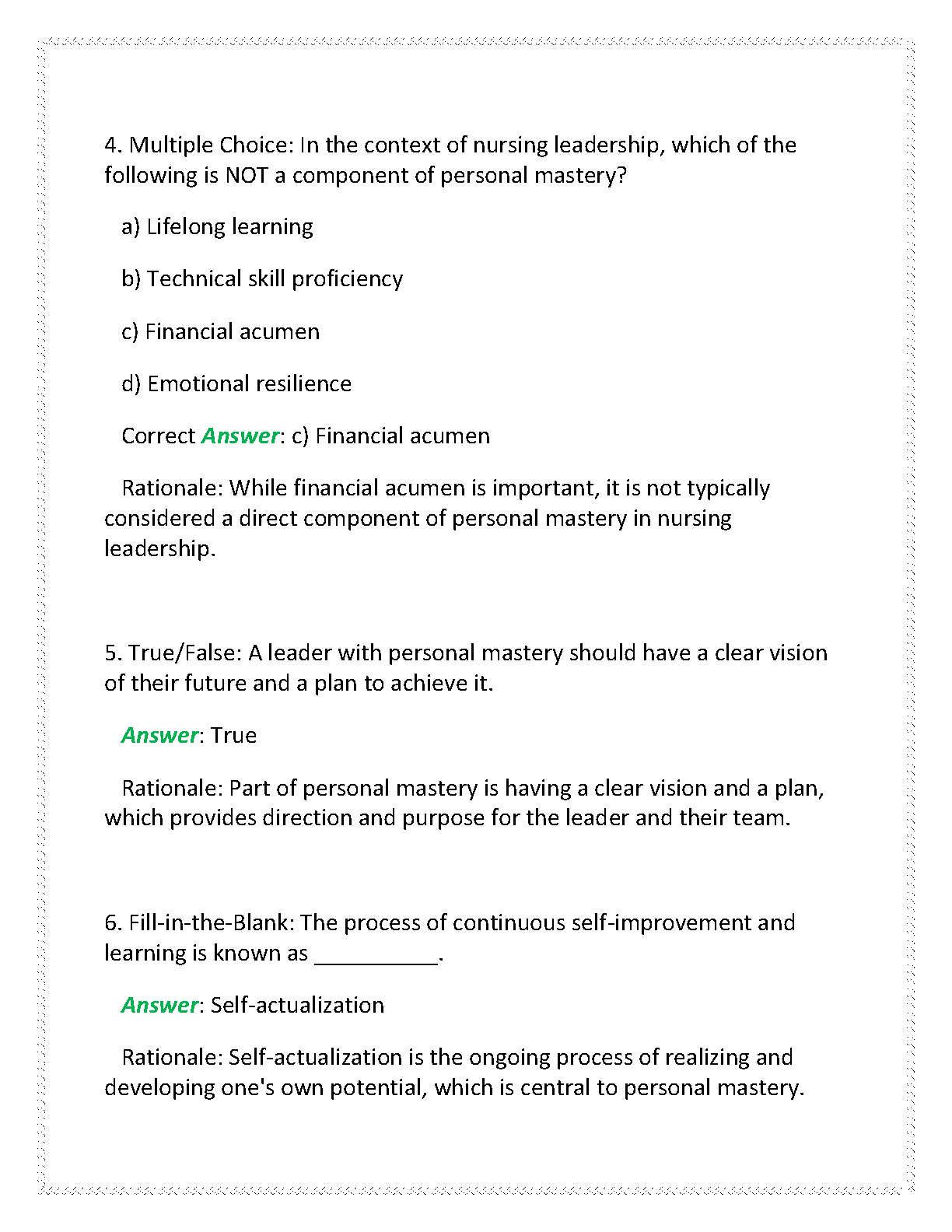 Leading with Personal Mastery: Comprehensive Final Assessment Test (D155 NURS 6431) 2024 Edition
