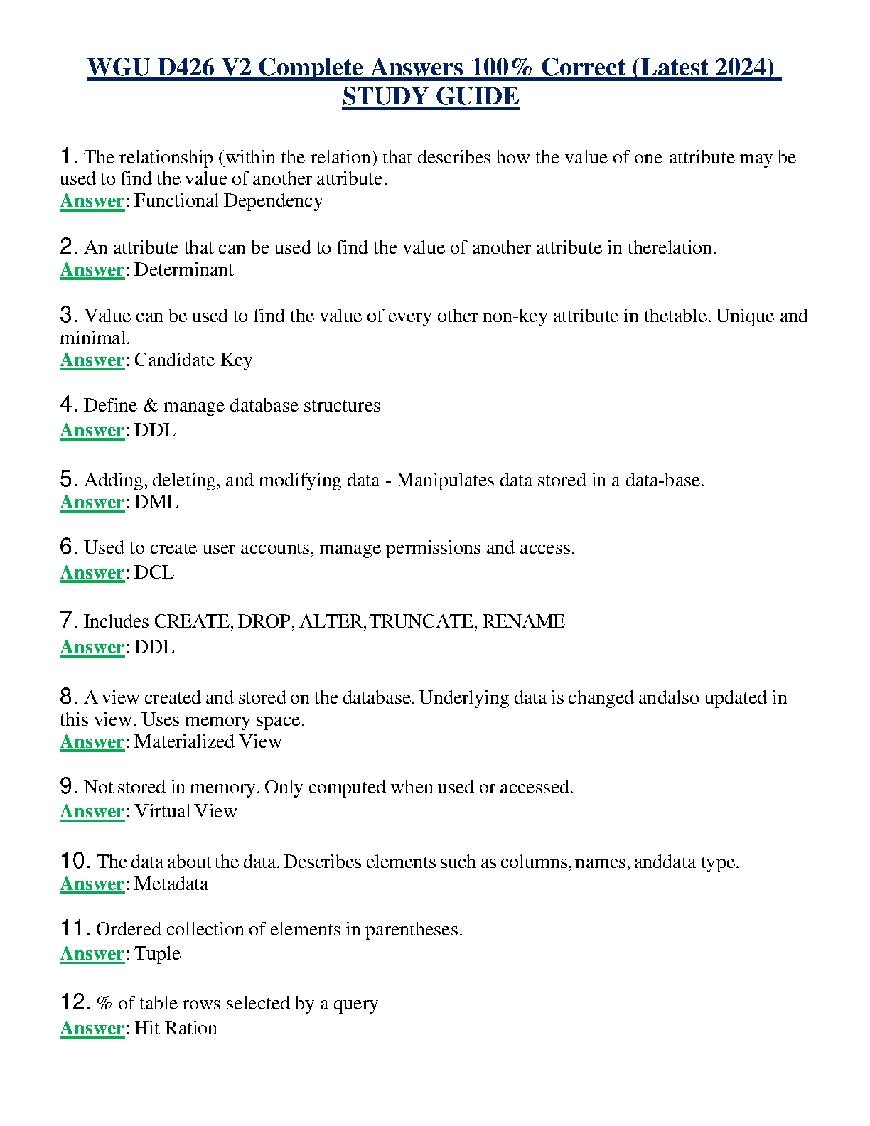 WGU D426 V2 Complete Answers 100% Correct (Latest 2024/2025) - Guaranteed Success on First Attempt