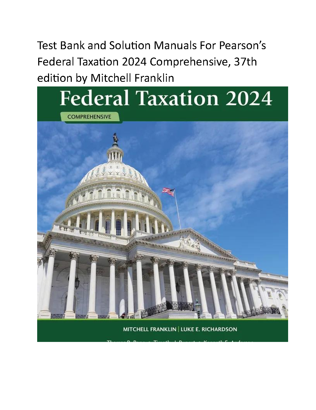 Federal Taxation 2024: 37th Edition by Mitchell Franklin and Luke E. Richardson - Test Bank and Solutions Manual