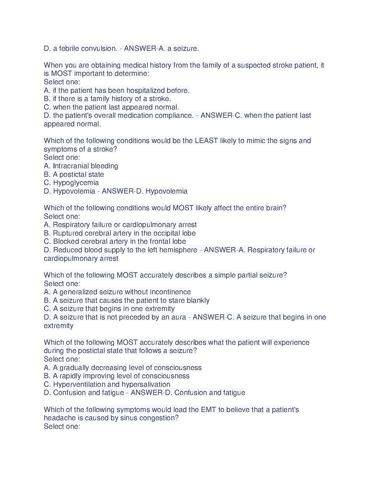 West Coast EMT Block Exam #3(Questions & Answers) 2024/2025 Edition for First Attempt Success