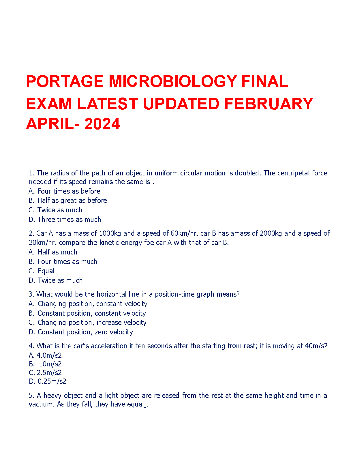 Portage Microbiology Final Exam Latest Updated February April - 2024