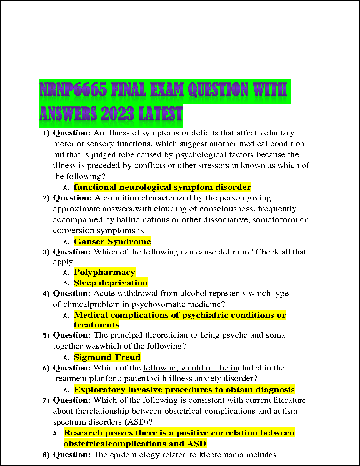 NRNP 6665 Final Exam Questions with Answers 2023 Latest - Complete Study Guide for Passing Your Exam on the First Attempt