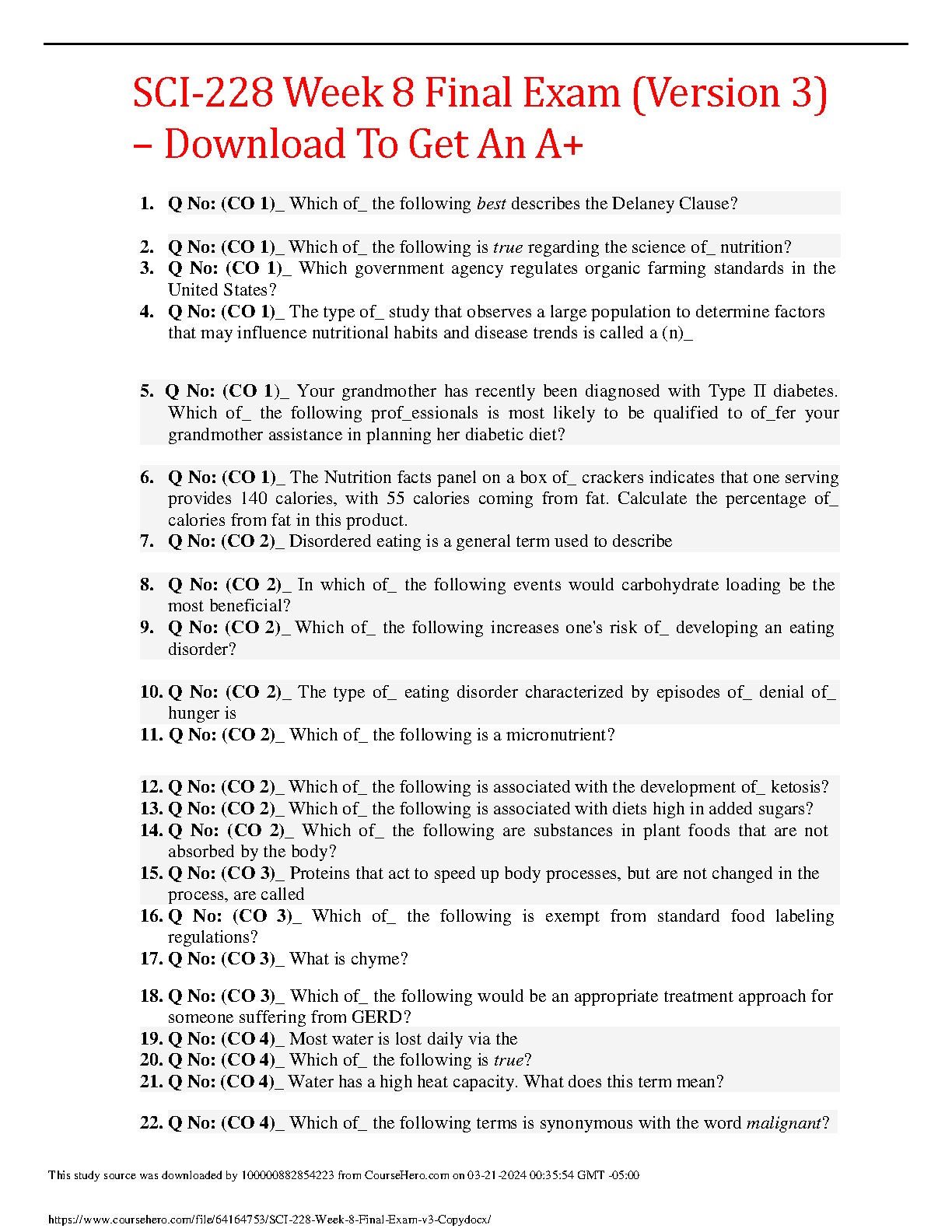 SCI-228 Week 8 Final Exam (Version 3) - Download To Get An A+ - 2024/2025 Edition