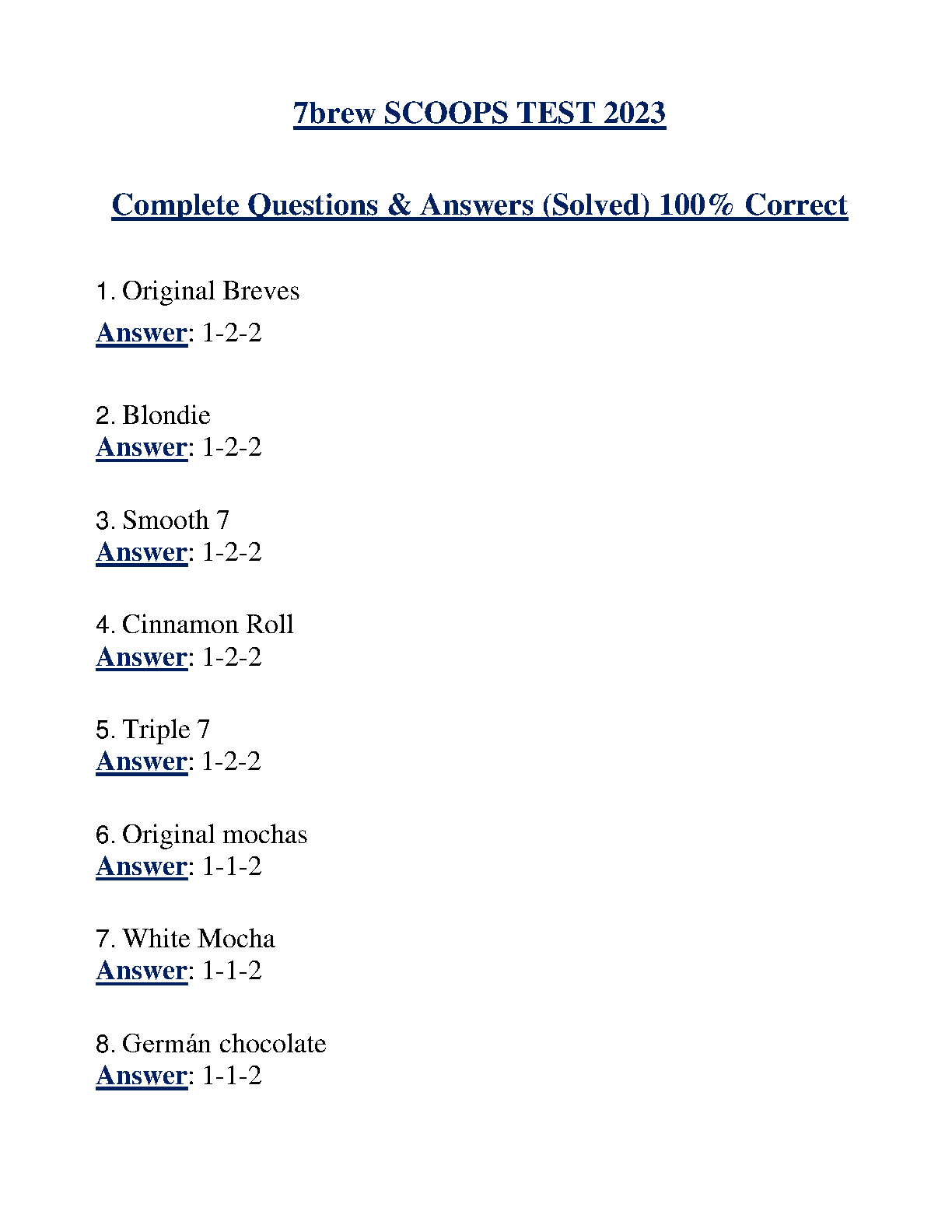 7brew SCOOPS TEST 2023: Complete Questions and Answers for Success