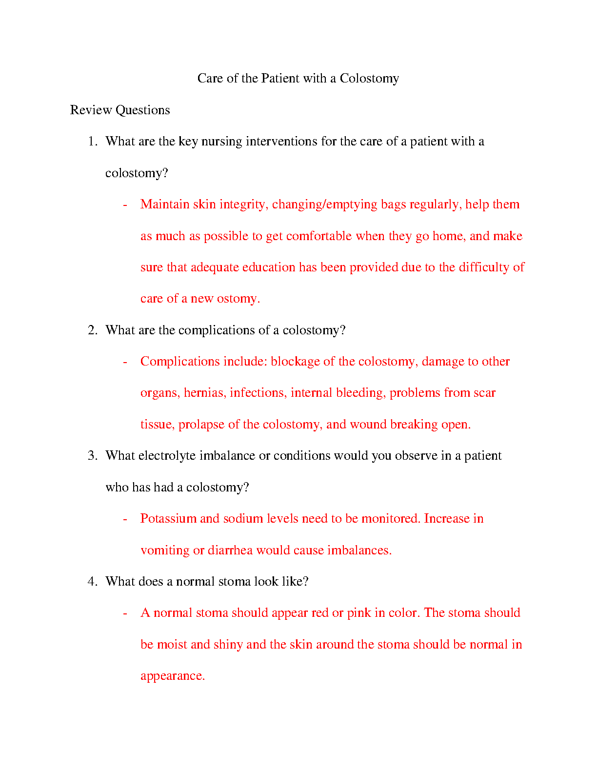 Care of the Patient with a Colostomy: Nursing Interventions, Complications, and Electrolyte Imbalances