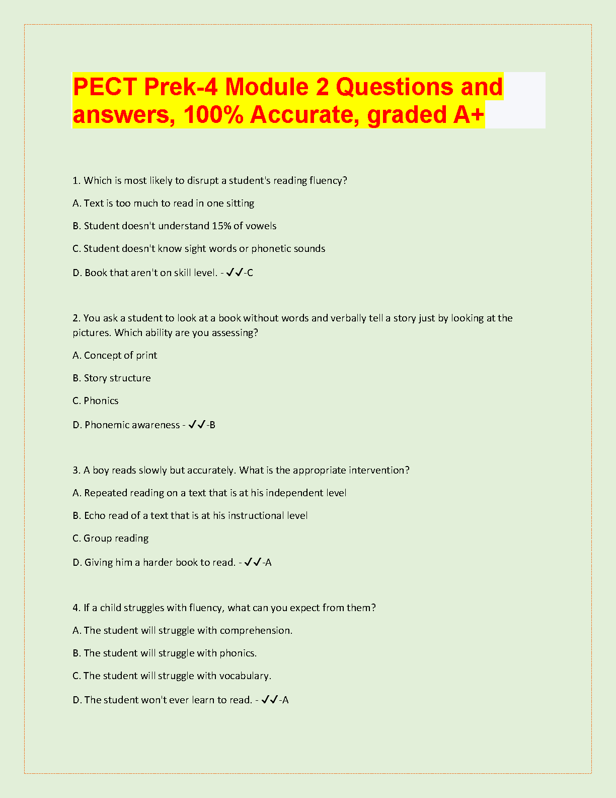 PECT PreK-4 Module 2 Questions and Answers, 100% Accurate, Graded A+