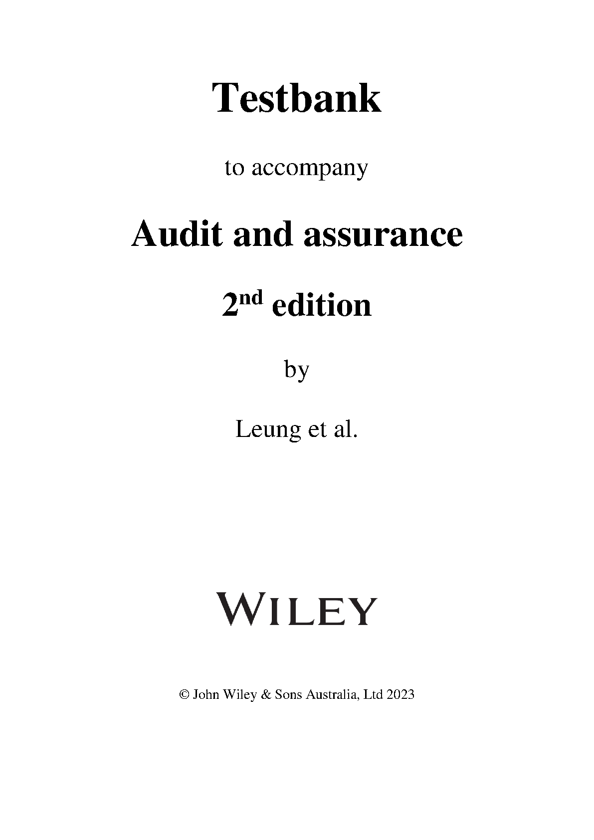 Audit and Assurance, 2nd Edition by Leung, Coram, Cooper, Redgen, and Canestrari-Soh: The Complete Guide to Mastering Auditing Concepts