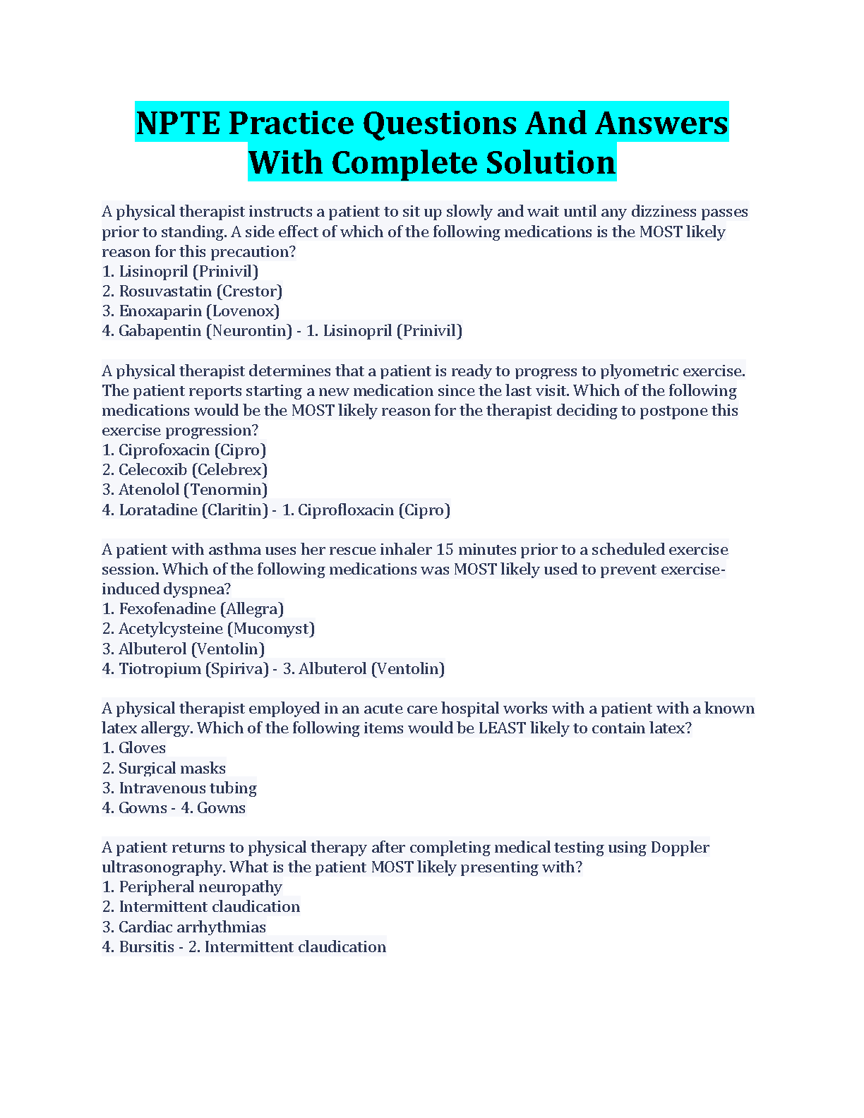NPTE Practice Questions and Answers with Complete Solutions for 2024/2025 - Ace your NPTE Exam on the First Attempt!