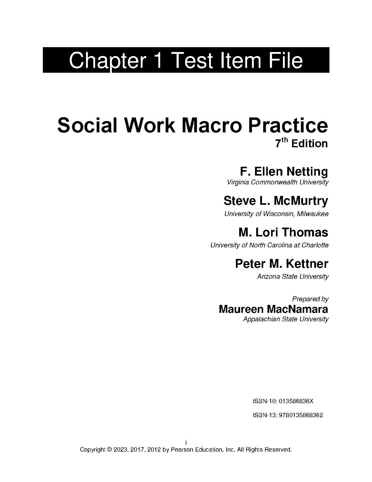 Social Work Macro Practice 7th Edition Test Item File by F. Ellen Netting, Steve L. McMurtry, M. Lori Thomas, Peter M. Kettner