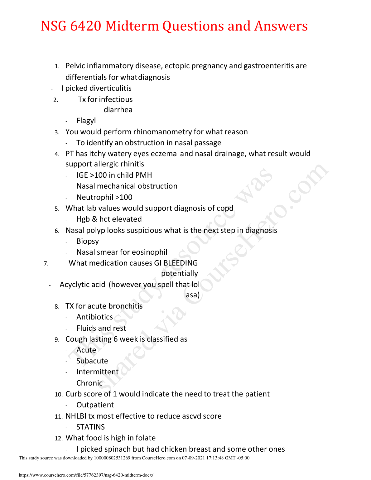 NSG 6420 Midterm Questions and Answers 2023/2024