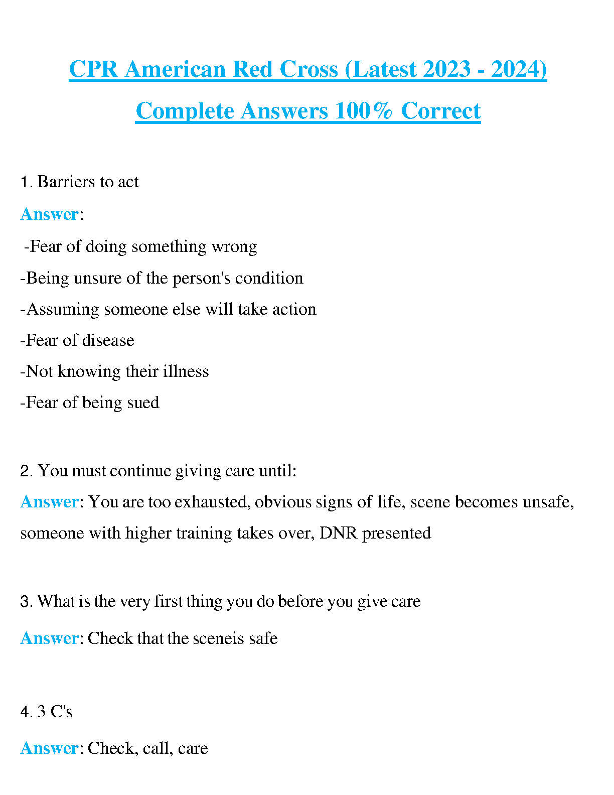 The latest edition of CPR American Red Cross Complete Answers 100% Correct for the 2023-2024 academic year, with complete solutions to all questions. This resource is designed to help you pass your CPR certification exam on the first attempt.