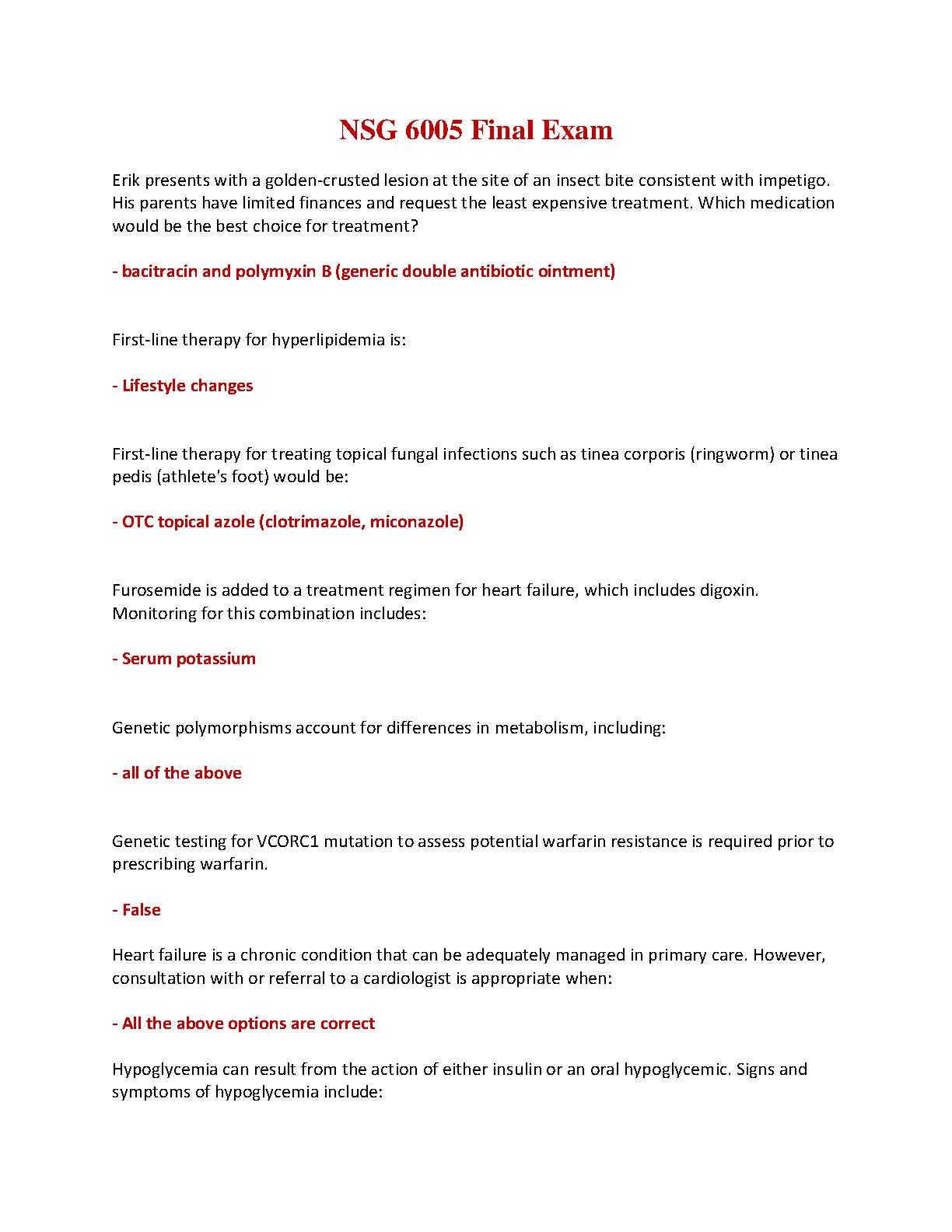 NSG 6005 Final Exam WITH VERIFIED 2023