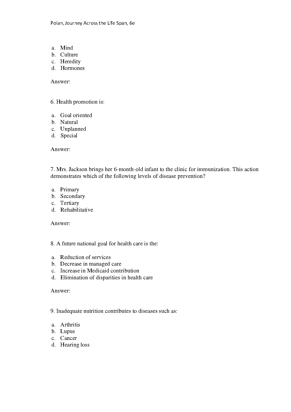 Journey Across the Life Span 6th Edition Test Bank by Barbara Polan, Mary Anne H. Hockenberry, Penny T. Wilson, and Patricia J. Harris