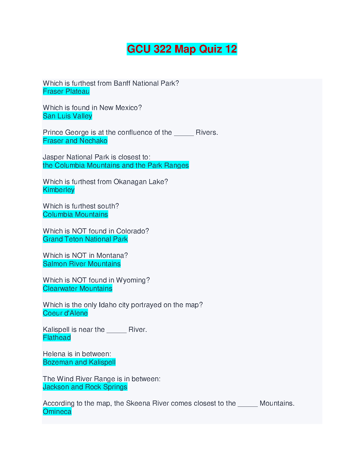 GCU 322 Map Quiz 12 - Ace Your Exam with This Resource